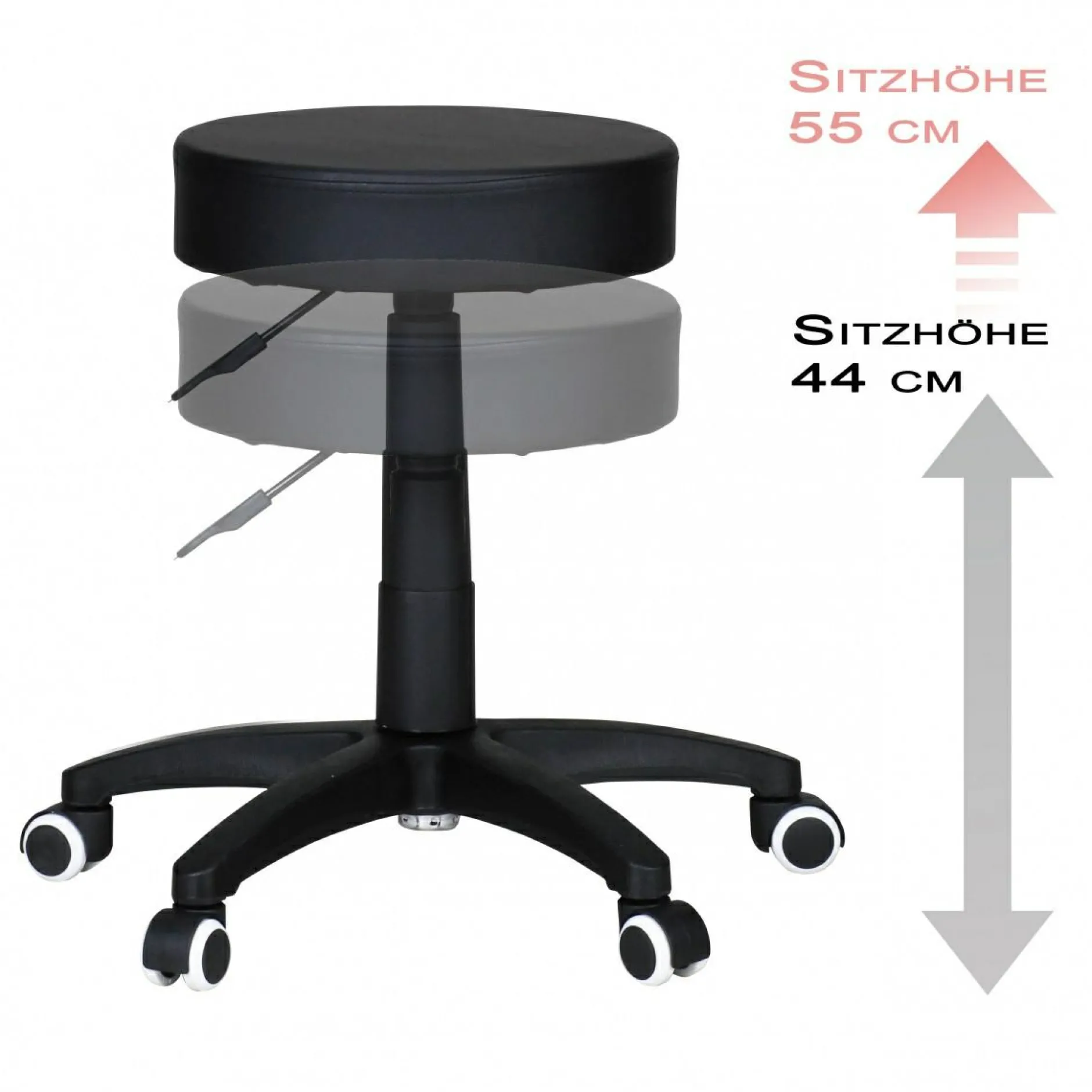 · Die Sitzhöhe ist durch die Gasdruckfeder von 44 bis 55 cm einstellbar