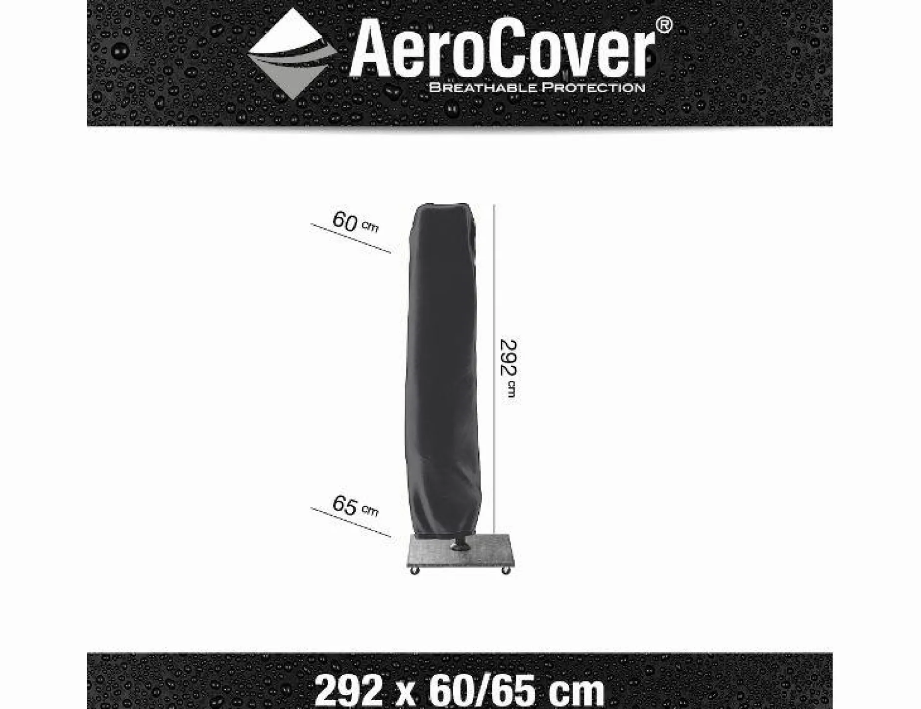 · Ampelschirm-Hülle 292×60/65 cm von AeroCover. Atmungsaktive Schirm-Hülle. Schirm-Hülle passend für Ampelschirme mit einem Durchmesser bis zu 4 Meter und eckigen Schirmen bis zu 3×4 Meter. Eingenähter Glasfaser Stab. Dadurch ist ein einfaches Überziehen der Hülle, auch ohne die Nutzung einer Leiter, gewährleistet. AeroCovers sind aus leichtem Ripstop Polyester mit einer integrierten, atmungsaktiven Membran hergestellt. Das atmungsaktive AeroCover-Gewebe ist wasserbeständig und reduziert die Kondensbildung, wodurch der Bildung von Schimmel vorgebeugt wird. AeroCover Schutzhüllen verlängern die Lebensdauer Ihres Ampelschirms. Dank des dünnen Gewebes sind diese Hüllen besonders handlich in der Anwendung. Die Hülle ist mit einem Zugband mit zwei Stoppern ausgestattet, so dass eine optimale Befestigung sichergestellt ist Das AeroCover-Gewebe ist 100% wasserdicht, die Nähte sind spritzwasserfest.