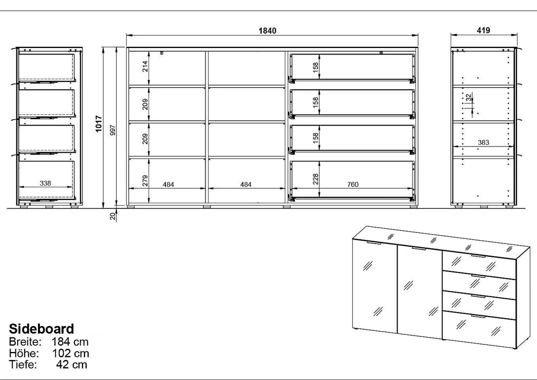 | Abmessung: | BHT 184x102x42 cm |