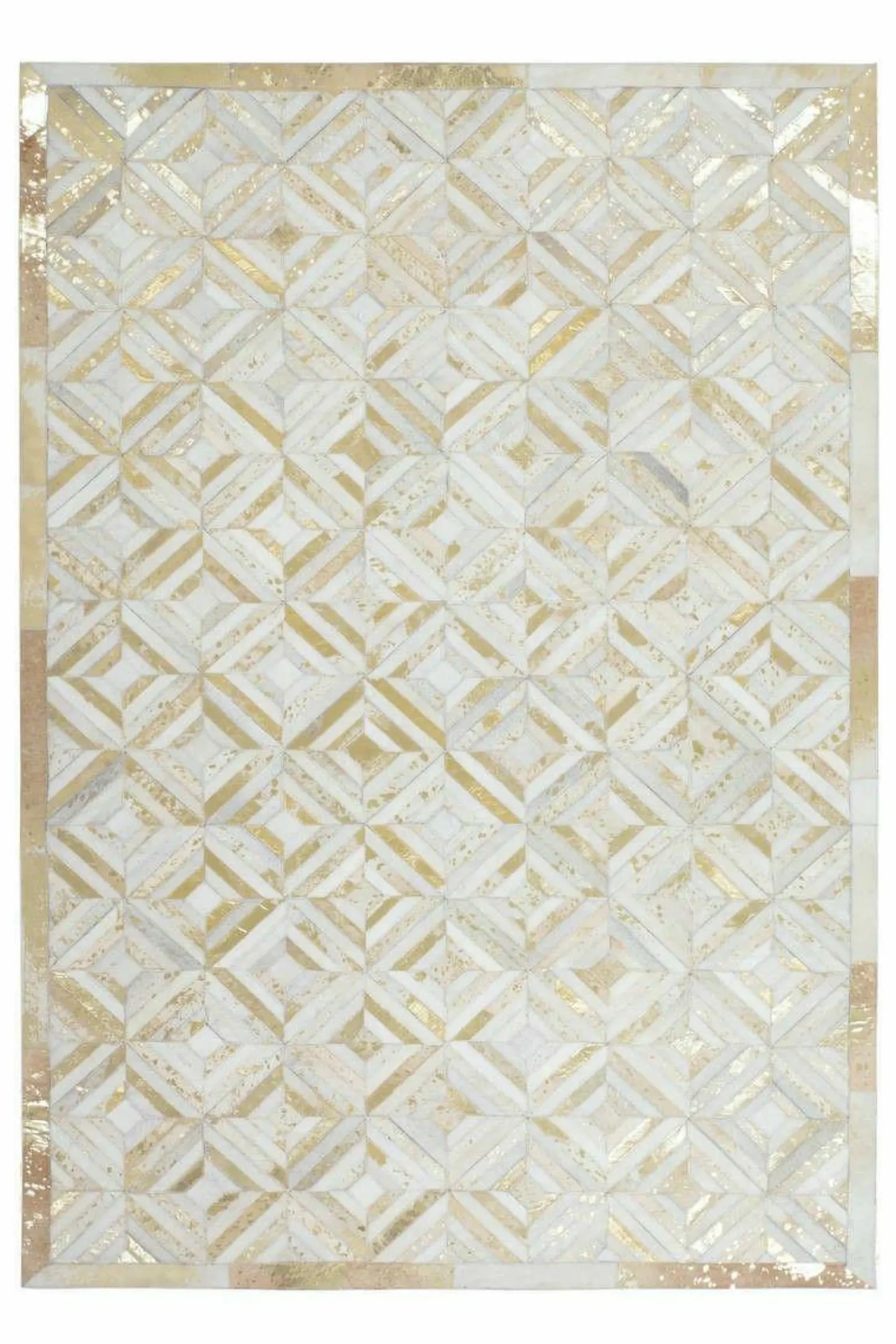 · Der wunderschöne Lederteppich mit eingearbeiteten Applikationen aus metallischer Folie rundet jeden edlen Einrichtungsstil gekonnt ab. Der hochwertige Edel-Teppich aus 100 % Leder überträgt einen individuellen Touch auf seine Umgebung und erzeugt ein ganz besonderes Flair. Von Hand gefertigt ist jeder einzelne Lederteppich ein Unikat. Die Verwendung von edlen Naturmaterialien und die hochwertige Verarbeitung sorgen für ein dynamisches Aussehen und machen jeden Teppich einzigartig, denn bei Naturprodukten kann es in Form, Farbe und Muster zu Abweichungen von bis zu 30 % kommen. Das natürliche Fell kann nach einiger Zeit und bei hoher Beanspruchung gegebenenfalls an Haaren verlieren. Ebenso könnte sich die Metallicfolie unter Umständen ablösen. Dies ist dem Naturprodukt und der Beschaffenheit des Fells geschuldet und kein Produktionsfehler. Setzen Sie ein Statement mit diesem Lederteppich und machen Sie ihn zum Blickfang in Ihren vier Wänden. Er eignet sich für alle Räumlichkeiten – ob Wohnzimmer, Schlafzimmer, Diele oder Esszimmer. Das moderne filigrane Rautenmuster verleiht dem Produkt eine ganz besondere Note und kommt in Kombination mit verschiedenen Möbeln gut zur Geltung. verschiedenen Naturfaser-Teppiche fangen Fusselwolken ein und sind daher besonders gut für Allergiker geeignet, da sie gleich abgesaugt werden können. Der extra bequeme Lederteppich ist ein Alleskönner, der sowohl durch seine Optik als auch durch seine Haptik überzeugt. Das strapazierfähige Material macht die schwere Qualität des Teppichs aus, ist äußerst langlebig und pflegeleicht. Für einen spürbaren Wohlfühl-Effekt sorgt dabei die wärmeisolierende Eigenschaft des Leders. Verleihen Sie Ihren Räumen das gewisse Etwas und schaffen Sie Ihre eigene Relax-Insel in verschiedenen Nuancen. Selbst die kleinste Wohnung lässt sich mit diesem wundervollen Naturteppich persönlich einrichten, denn er ist in verschiedenen Größen erhältlich.
