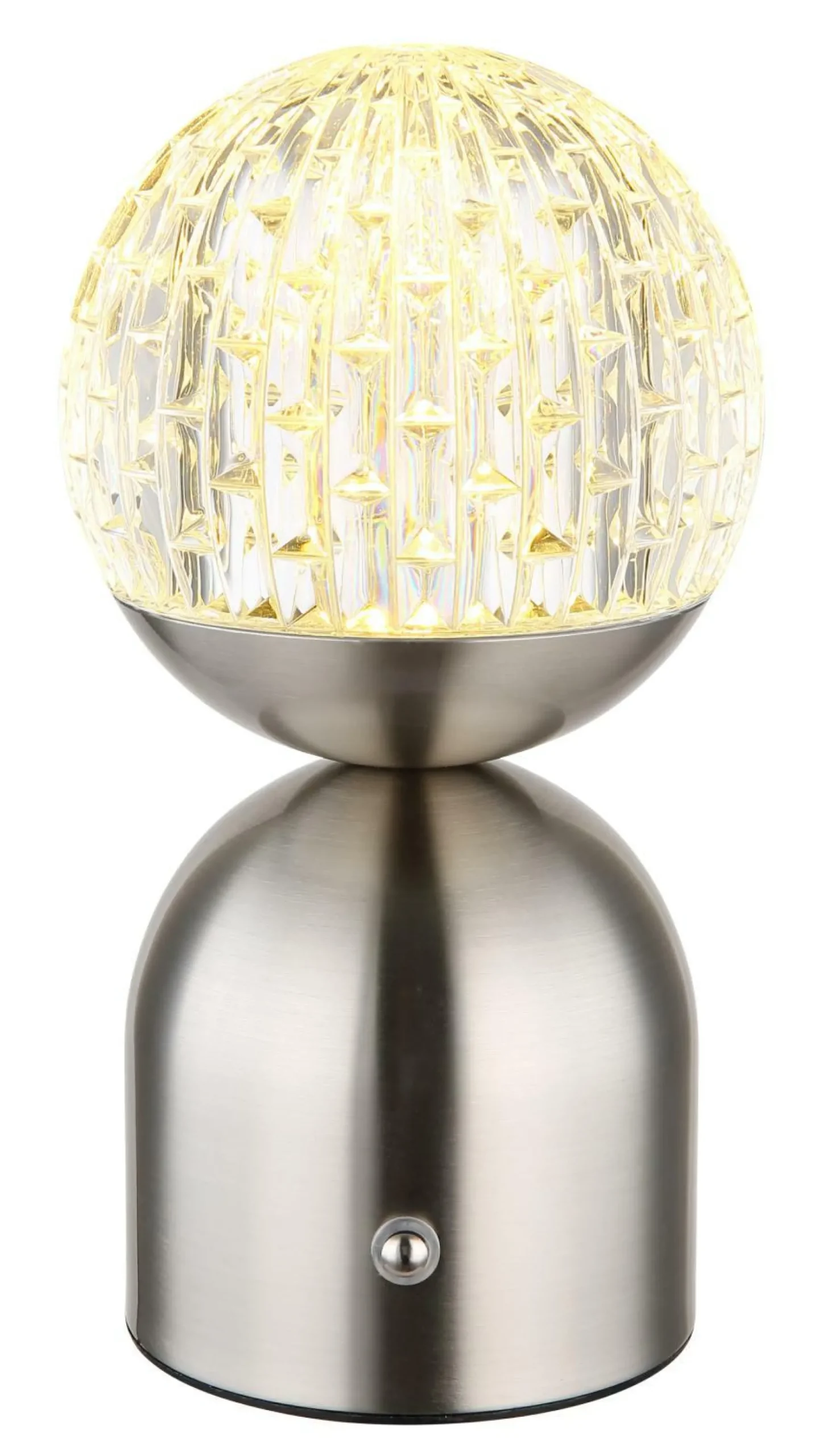· Tauchen Sie Ihren Raum in ein faszinierendes Licht mit der JULSY Tischleuchte. Das matte Nickel-Metall in Kombination mit dem klaren Acryl und dem funkelnden Kristalleffekt verleiht dieser Leuchte eine moderne Eleganz. Mit dem stufenlosen Touchdimmer können Sie die Helligkeit nach Belieben anpassen und die gewünschte Farbe fixieren. Das praktische USB-Ladekabel ermöglicht eine bequeme Aufladung des eingebauten 1200mAh-Akkus, der in nur ca. 4 Stunden vollständig aufgeladen ist. Mit einem Durchmesser von 105mm und einer Höhe von 200mm passt die JULSY perfekt auf jeden Tisch. Die Leuchte enthält eine energieeffiziente LED mit 2.5W, die eine Helligkeit von 243lm (Source) und 173lm (Output) erzeugt. Wählen Sie zwischen den drei Farbtemperaturen 2700K, 4000K und 6500K und schaffen Sie die perfekte Atmosphäre für jeden Anlass. Erleben Sie mit der JULSY Tischleuchte einzigartiges Design und faszinierendes Licht.