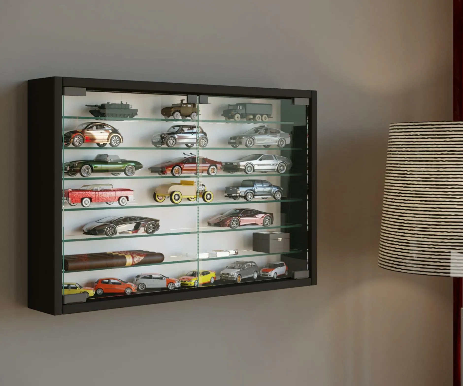 Mit der Vitrine MANDOSA können Sie Ihre persönlichen Sammlerstücke und Urlaubsmitbringsel optimal präsentieren. In Qualität der Marke VCM steht die Vitrine für geschmackvolles Design und ein einzigartiges Wohnerlebnis. Dekor kommt bei der Herstellung zum Einsatz. Die MANDOSA kann auch optisch durch ihren modernen Stil punkten. Sie besitzt ein Breitenmaß von 60 cm, eine Höhe von 40 cm und eine Tiefe von insgesamt 10 cm. Mit diesem Glasschrank erstrahlen Ihre wertvollsten Erinnerungsfotos in neuem Licht.
