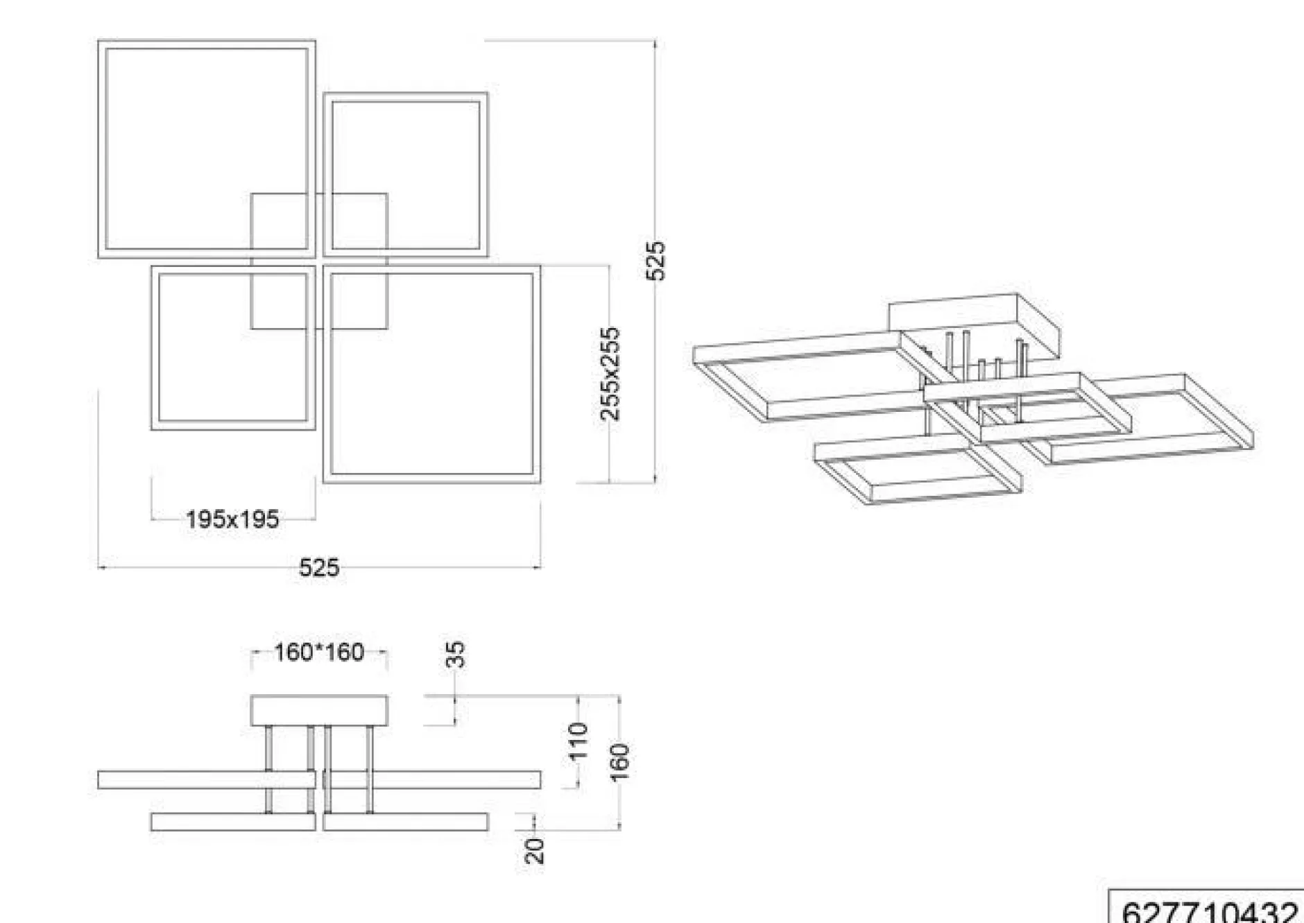 Setzen Sie mit der formschönen Deckenleuchte SORRENTO tolle Lichtakzente und verleihen Sie Ihrem Interieur eine besondere Note. Geschmackvolles Design und ein überzeugendes Wohngefühl machen die Deckenleuchte der Marke TRIO-Leuchten aus. Das Modell SORRENTO setzt mit seinem tollen Aussehen ein dekoratives Statement und bereichert dadurch Ihr Einrichtung. Es ist insgesamt 52,5 cm breit, besitzt eine Tiefe von 52,5 cm und ist 16 cm hoch. Die Deckenlampe integriert sich gelungen in Ihre Wohneinrichtung und schafft eine schöne, gemütliche Atmosphäre. Das Modell SORRENTO ist mit einer FEST-Fassung ausgestattet. Bei der Anfertigung kommt Metall zum Einsatz. Die Deckenleuchte kann auch optisch durch ihren modernen Stil begeistern. Ihr Interieur wird aufgrund dieser Leuchte gezielt ergänzt. Das Modell SORRENTO kann auch im ausgeschalteten Zustand als dekoratives Element dienen.