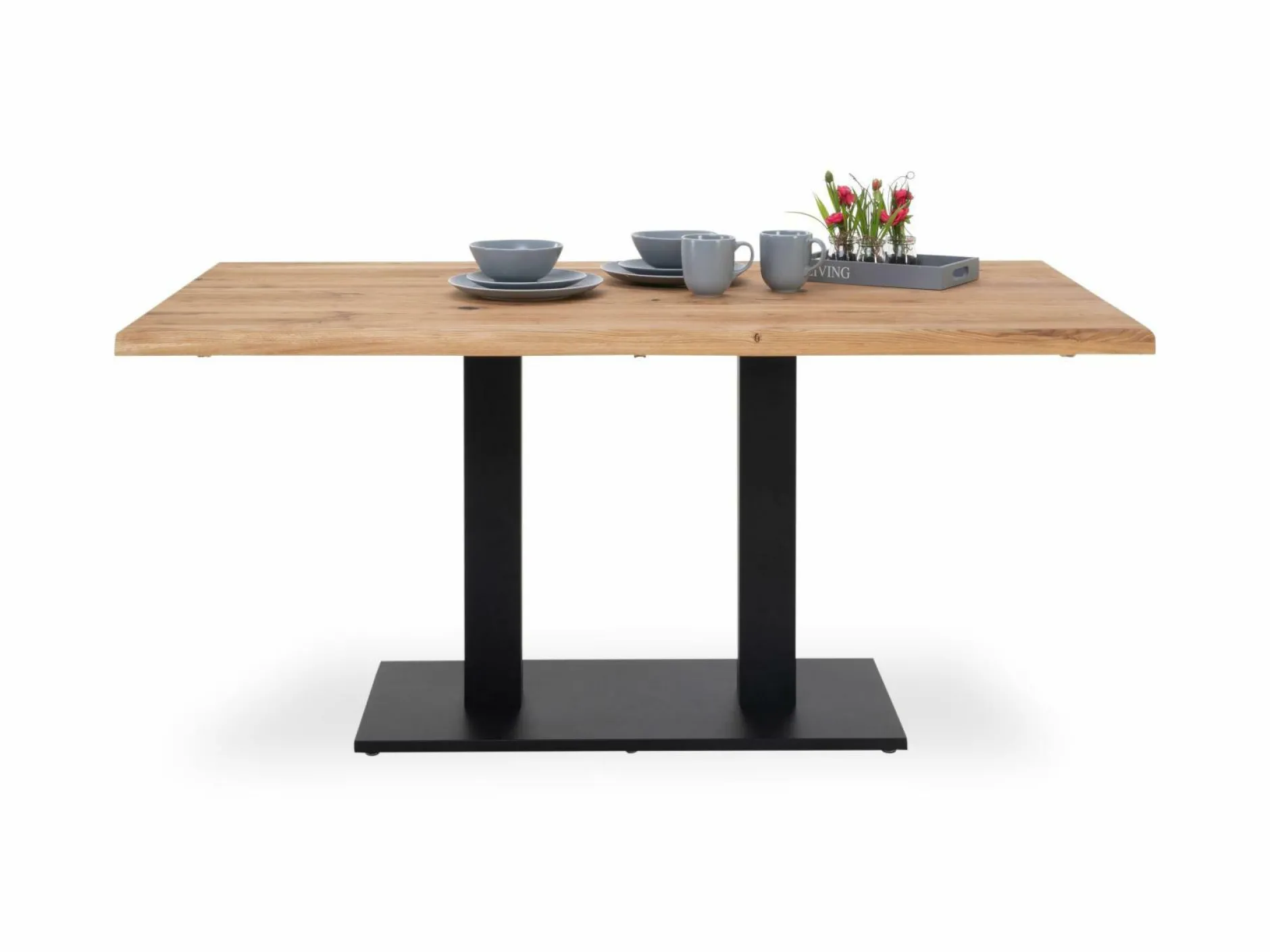 · Tischplatte: Eiche massiv mit Baumkante