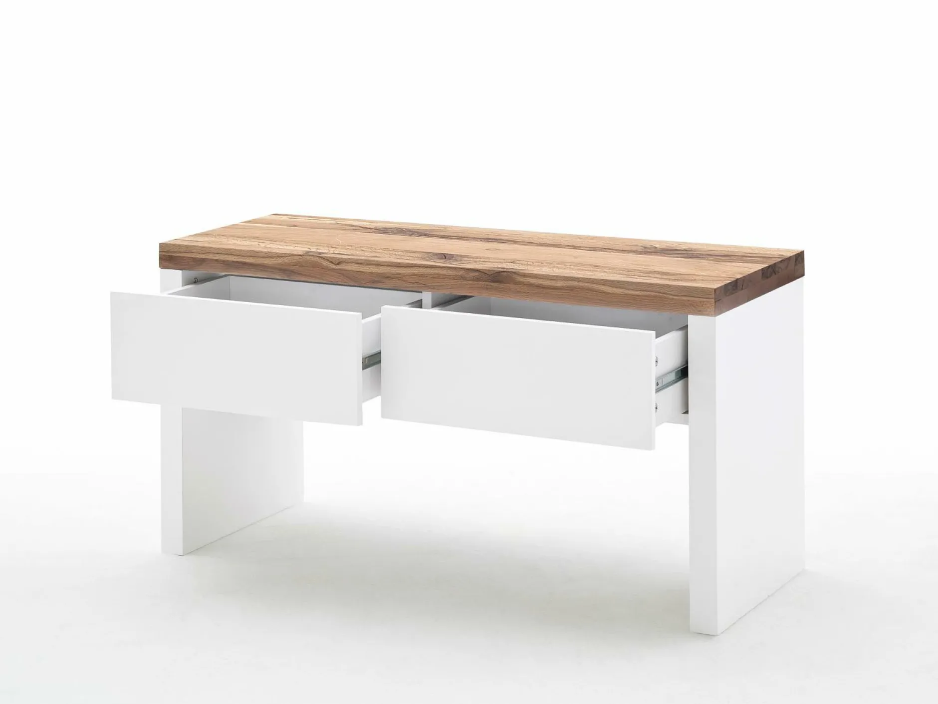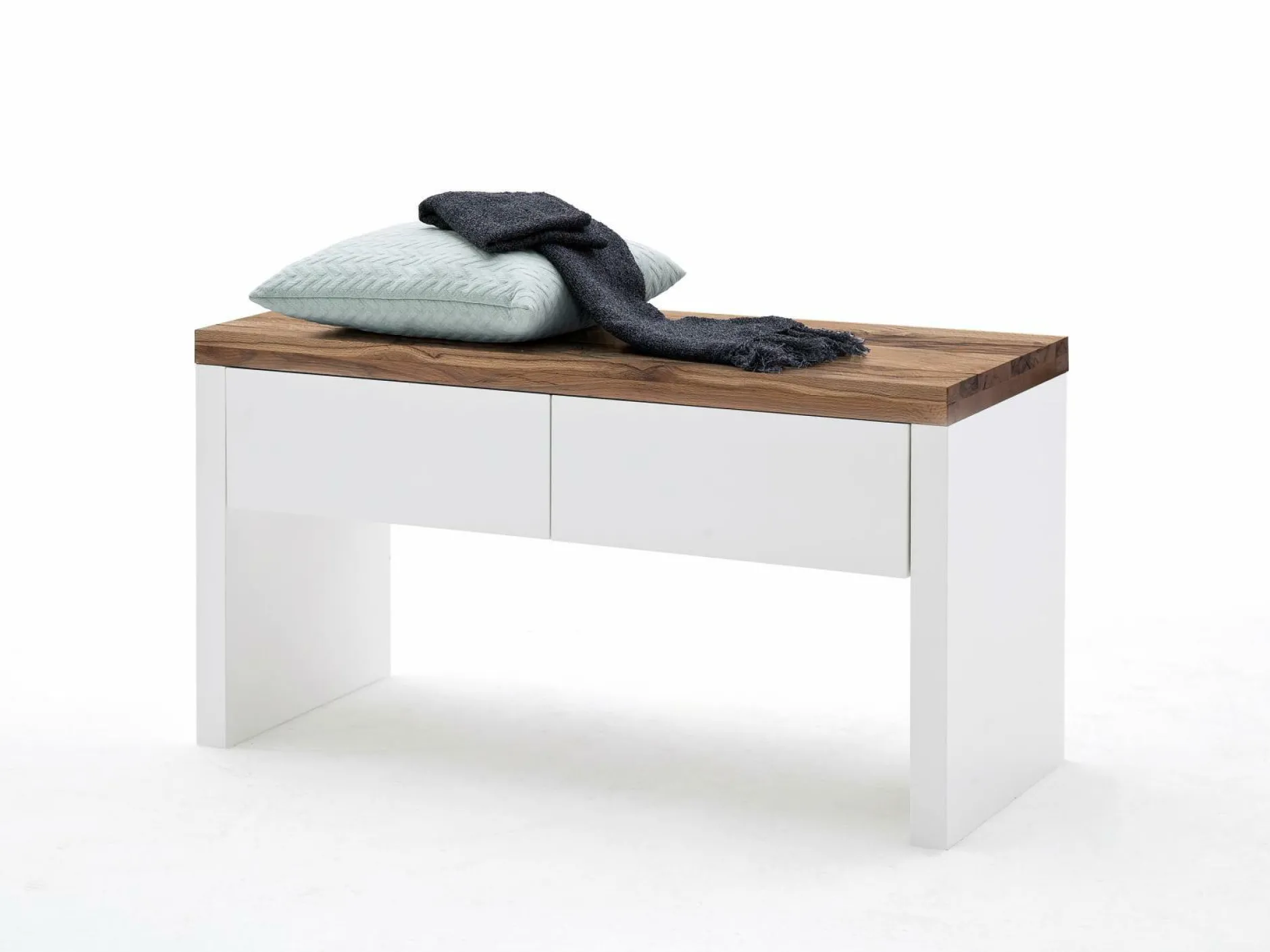 Die schöne Garderobenbank Murio erfüllt mehrere nützliche Funktionen gleichzeitig, da sie nicht nur eine Sitzmöglichkeit darstellt, sondern auch Stauraum in den zwei, leichtgängigen Schubkästen bietet. Die weiße Mattlackierung zeugt überdies von einer eleganten Optik, die die Bank in Ihrem Zuhause gekonnt-stilbewusst in Szene setzt.Ohne Dekoration.