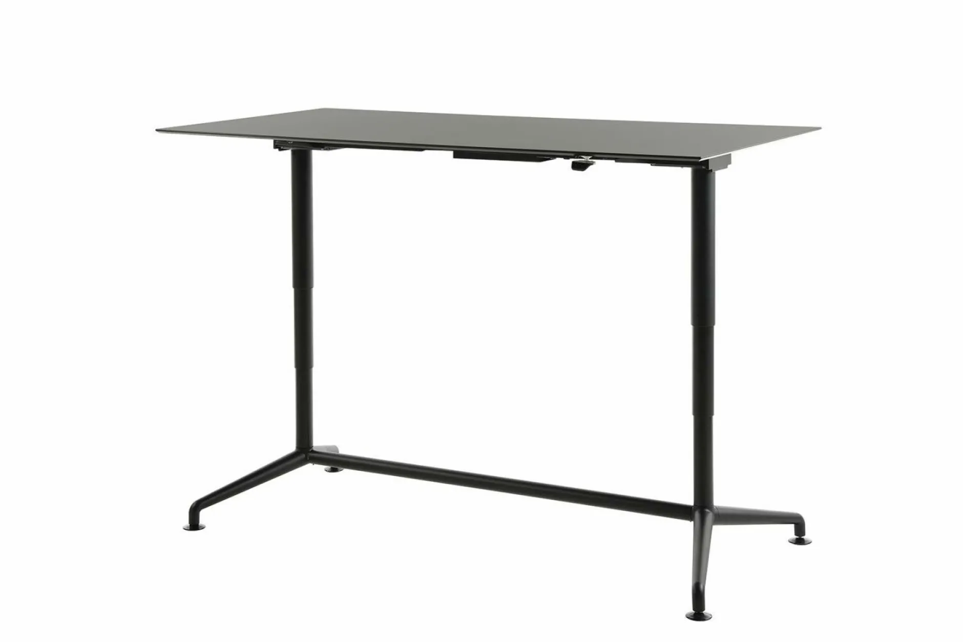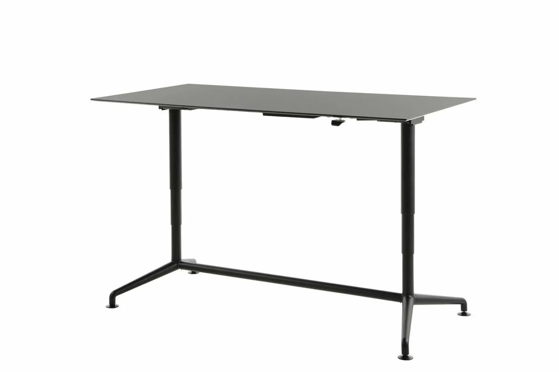 · Design-Tischgestell: Graphitschwarz matt RAL 9011, elektronisch höhenverstellbar, mit Quick-Click Fußgleitersystem
