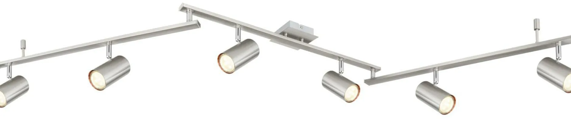 · Dieser Deckenstrahler aus der Robby-Serie (180×10 cm) überzeugt durch sein elegantes Design aus nickel-mattem Metall. Er besteht aus drei Metallstäben, an denen jeweils zwei schwenkbare, von Metall ummantelte GU10-Fassungen fixiert sind. Diese können Sie mit passenden Leuchtmitteln Ihrer Wahl bestücken, wodurch Sie die Möglichkeit habe, Lichtfarbe und Helligkeit nach Ihren Vorstellungen zu bestimmen. Durch weitere Artikel der gleichen Serie können Sie Ihre Innenräume stilvoll aufwerten.