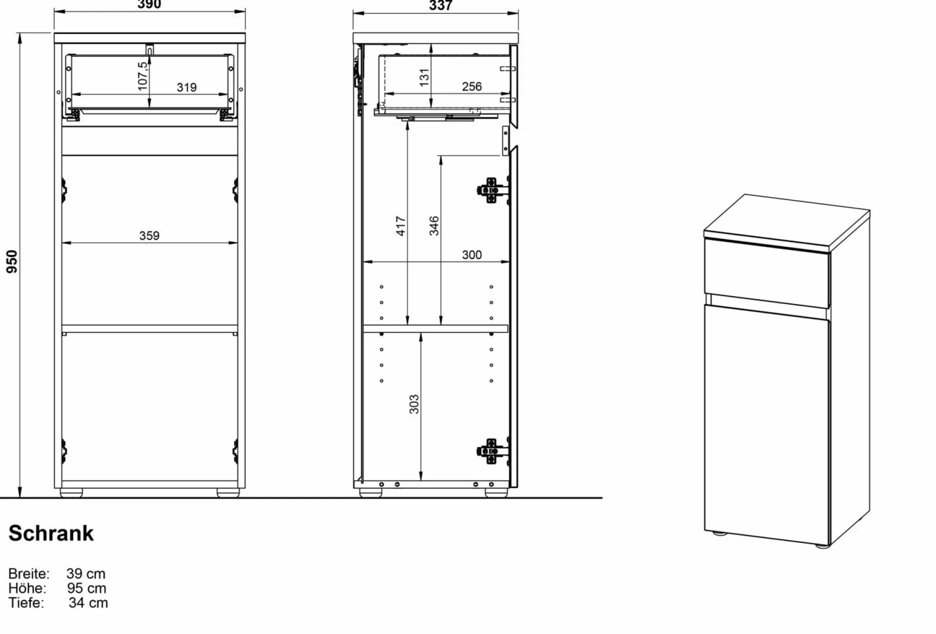 | Abmessung: | BHT 39x95x34 cm |