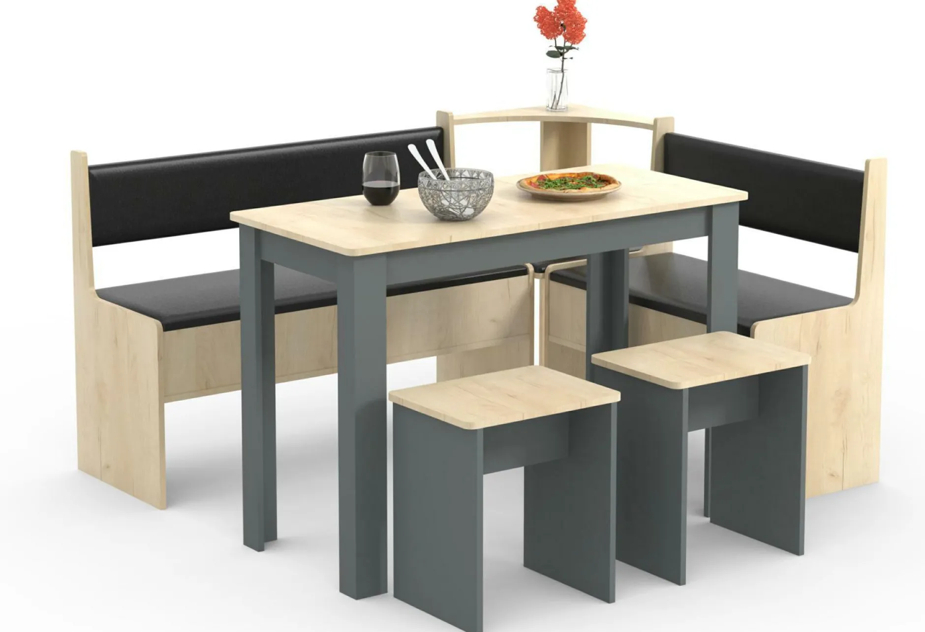 Die Eckbank ESAL bietet einen tollen Sitzplatz. Dank ihrer stimmigen farblichen Gestaltung lässt die Bank sich mit Leichtigkeit mit verschiedensten anderen Möbelstücken kombinieren. Sie macht in ihrem modernen Design eine hervorragende Figur. Die Verbindung des verwendeten Materials und seiner gelungenen Formgebung mit ästhetischen Details machen aus dem Sitzmöbel eine besonders stilvolle Erscheinung. Das Modell ESAL weist eine Breite von 153 cm, eine Höhe von insgesamt 80 cm und eine Tiefe von 115 cm auf. Erschaffen Sie mit dem Möbelstück ein komfortables Ambiente und bringen Sie gelungenes Design in Ihren Wohnbereich. Diese Bank begeistert auf den ersten Blick und wird schnell zu einem Lieblingsstück.