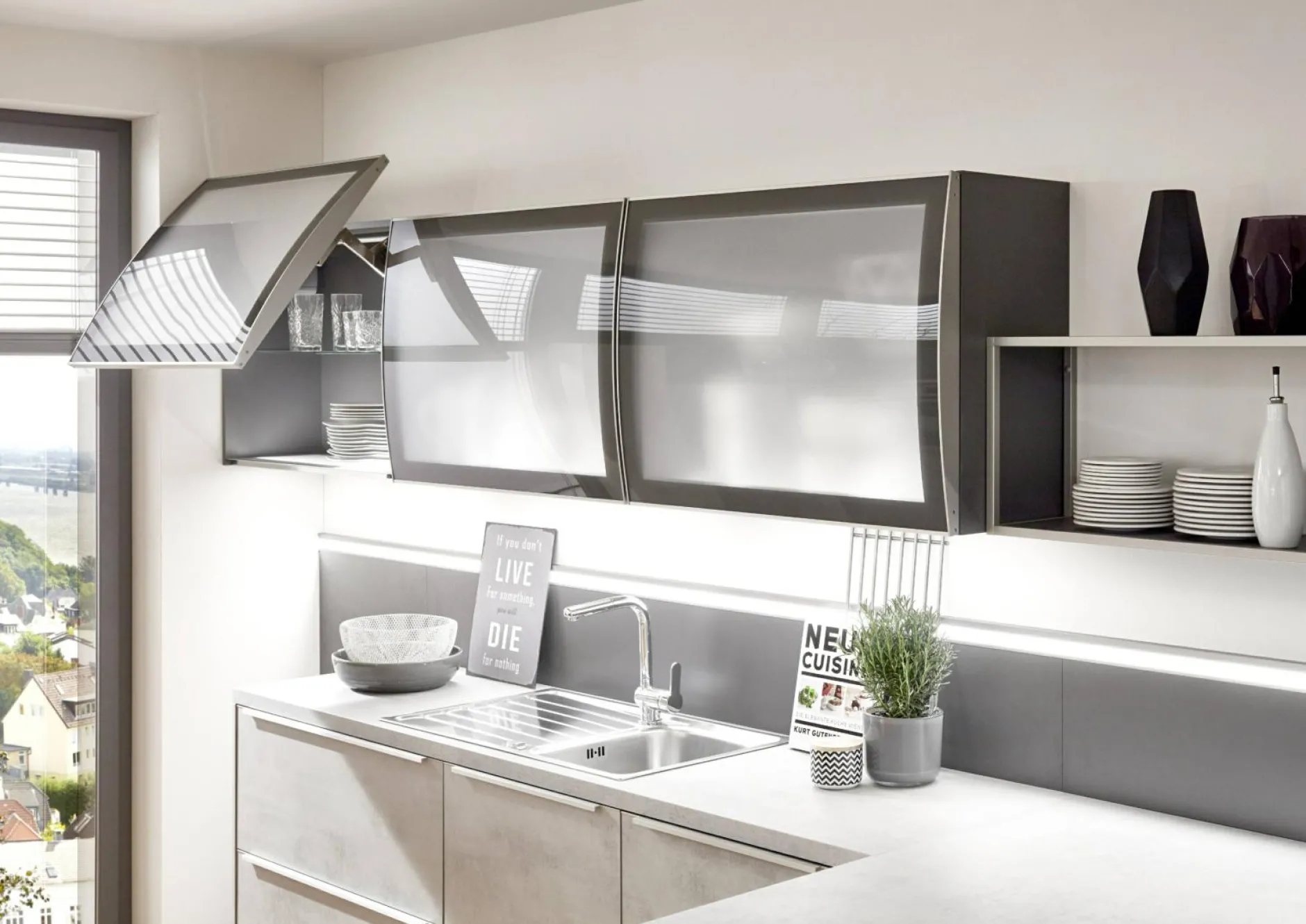 · 3 x Wandschrankmit Schwingklappe, Glasrahmenfront, WKSG90-1