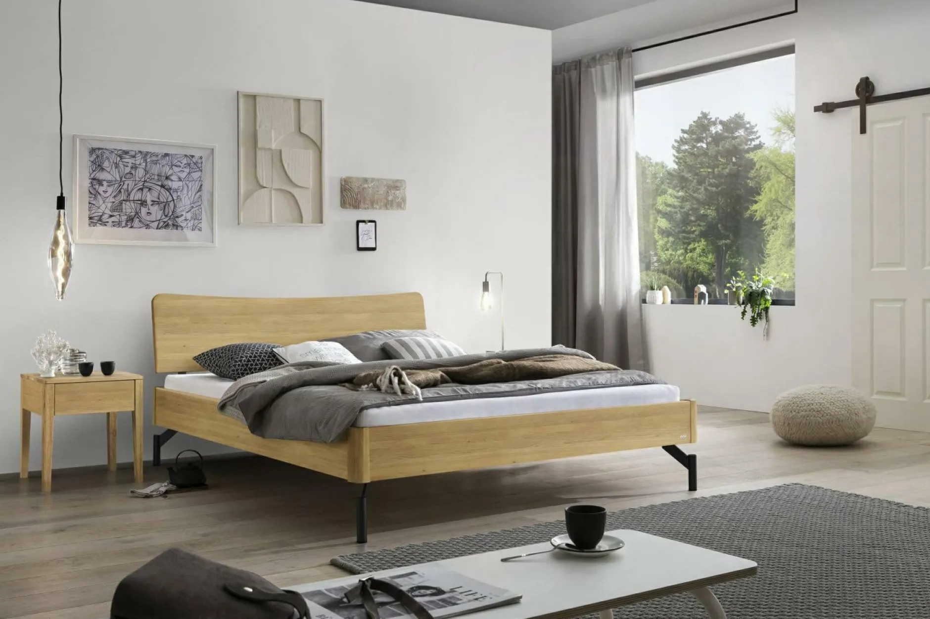 · So fresh, so clean würde die Jugend sagen – oder einfach schnörkellos, modern und puristisch. Das Kopfteil leicht geschwungen und zum Anlehnen bereit, bietet das Bett «Albinia» den Komfort, den man von einem Bett erwartet. Getragen wird der moderne Eyecatcher von futuristischen Metallfüssen.