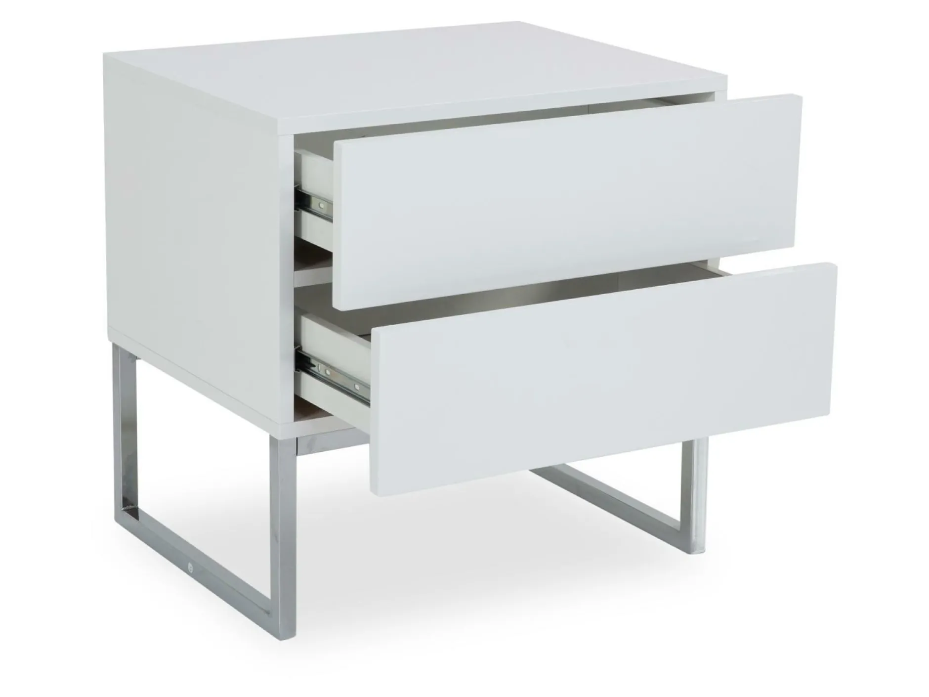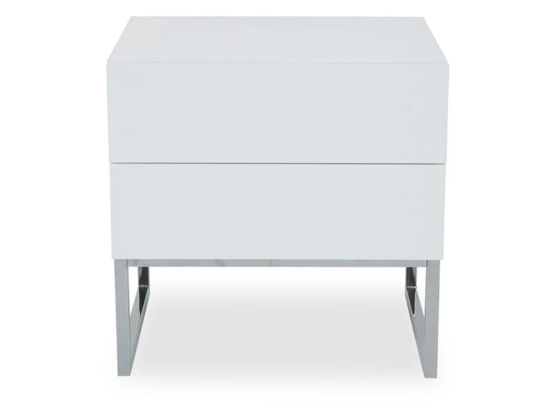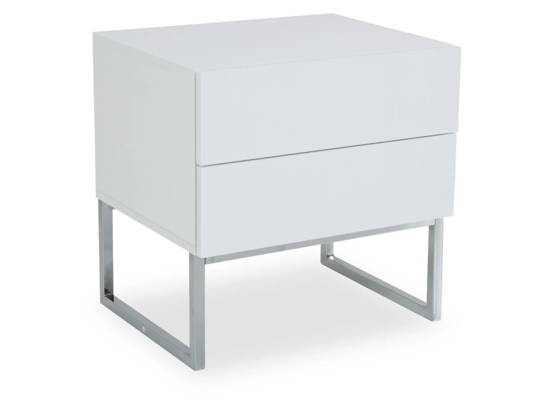 Zum Ablegen und Verstauen diverser Gegenstände im Schlafzimmer eignet sich die Nachtkonsole Nola 3 optimal. Ausgestattet mit 2 Schubkästen, bietet die Konsole ausreichend Platz für Bücher, Zeitschriften oder Accessoires. Die Konsole ist lackiert und erscheint in einem hochmodernen Hochglanz-Weiß. In Kombination mit den Füßen aus verchromten Metall wirkt dies besonders schick und elegant.