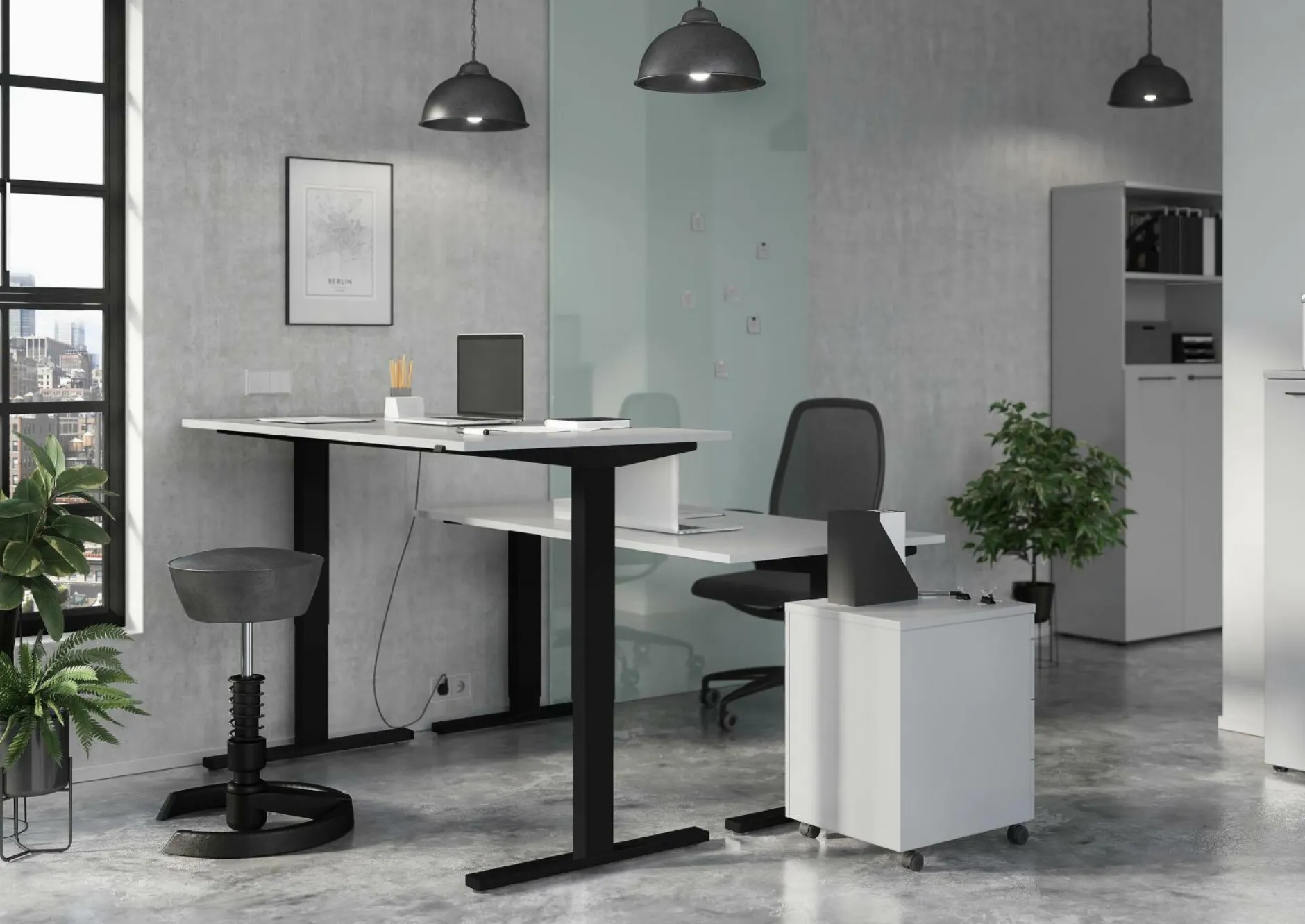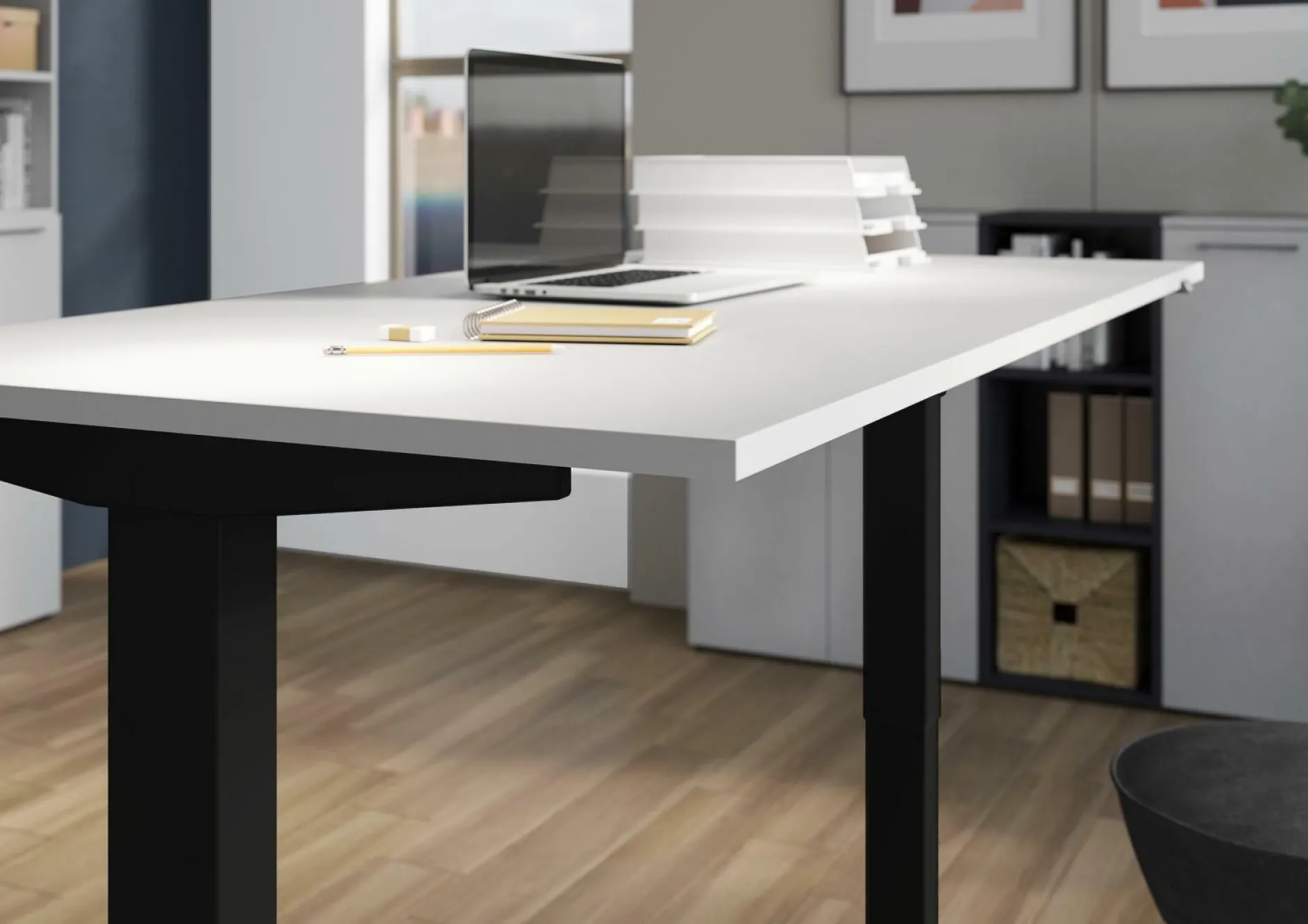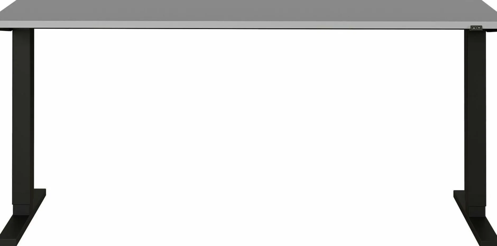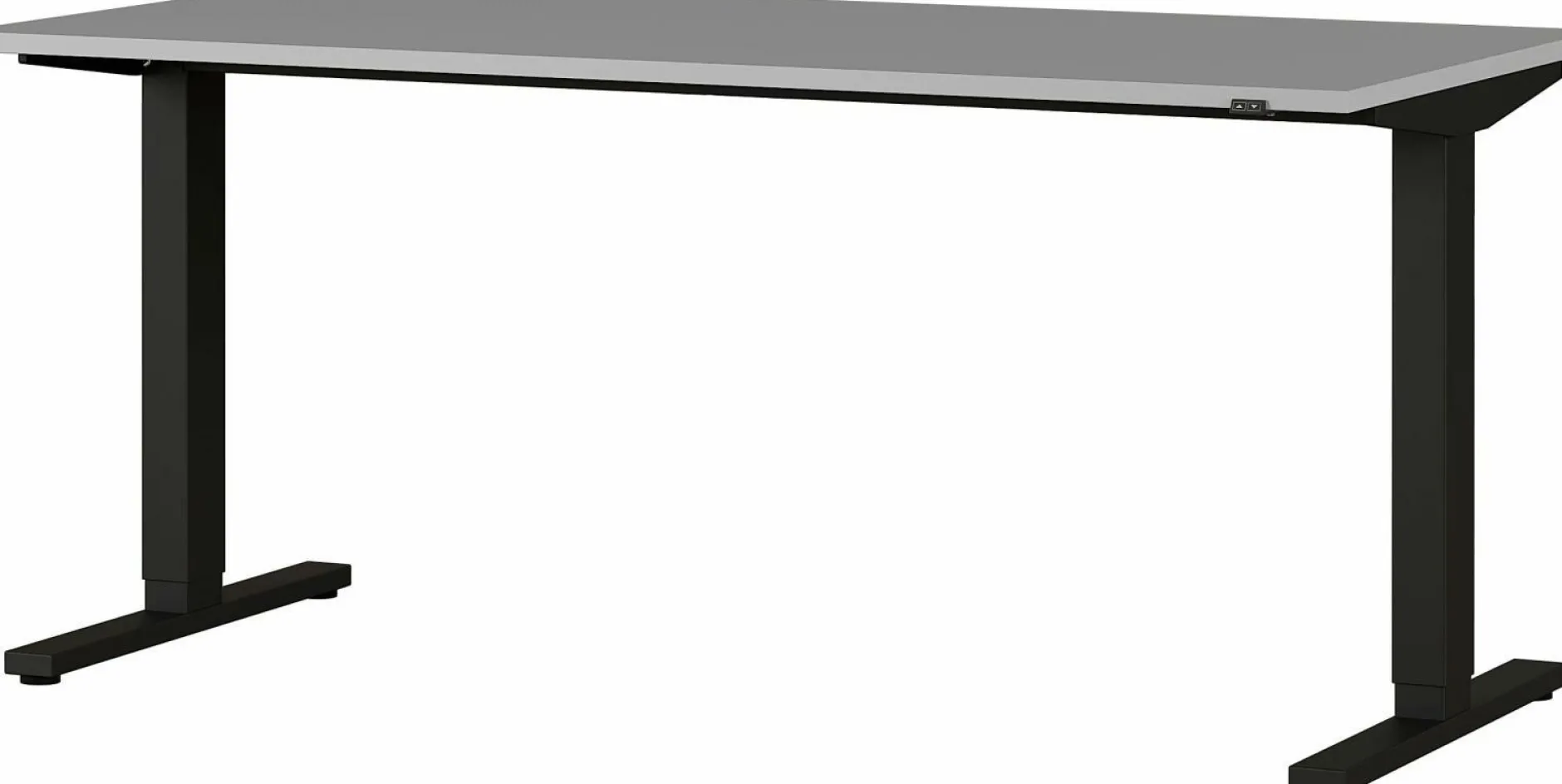 · Elektrisch höhenverstellbarer Schreibtisch mit zwei T-Füßen, Tischplatte (belastbar bis zu 80 kg), Gestell aus pulverbeschichtetem Metall, mit Stromkabel, Stecker und Bedieneinheit zum stufenlosen hoch- und herunterfahren der Tischplatte (von 73-120 cm), Melaminharzbeschichtung, ABS-Kanten, Made in Germany.