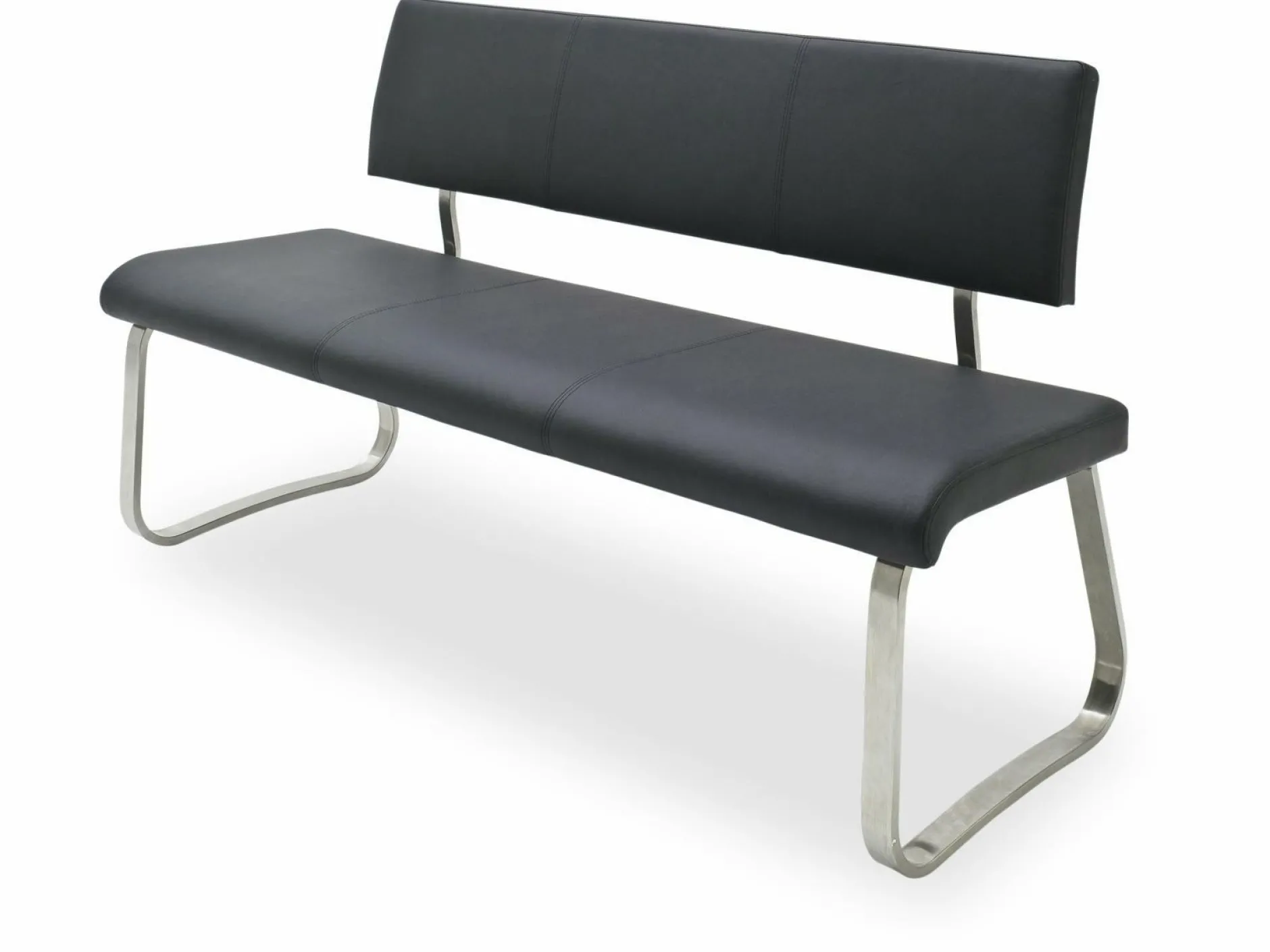 Schaffen Sie eine praktische Sitzgelegenheit mit der Sitzbank Arco. Diese Sitzbank erscheint mit einem edlen Lederbezug in Schwarz. Diese stilvolle Optik passt optimal in viele Einrichtungsstile. Darüber hinaus bietet die Sitzbank einen angenehmen Sitzkomfort. Das Flachrohrgestell aus Edelstahl rundet das moderne Design ab und sorgt für stabilen Halt.