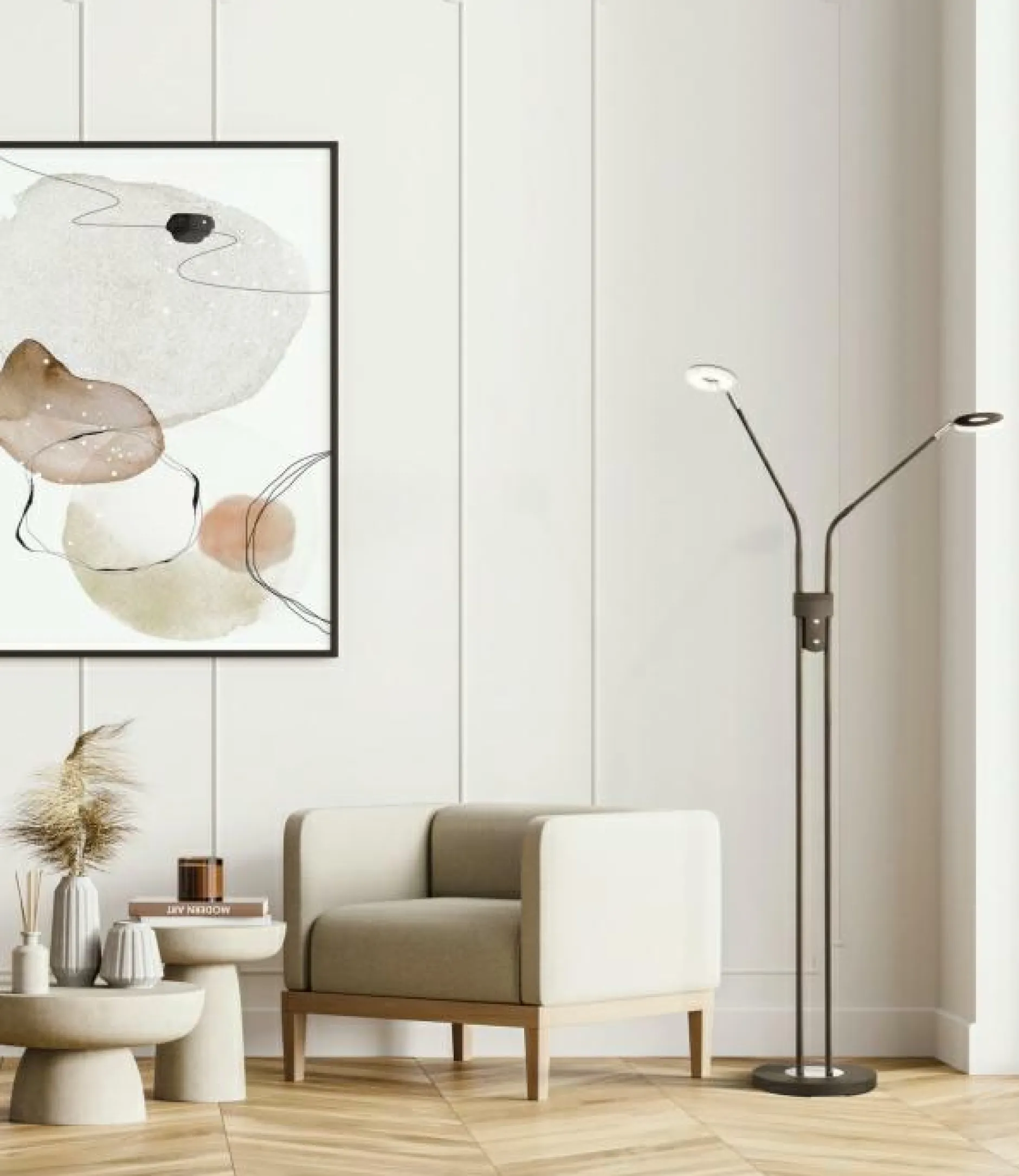 Ihre Innenausstattung vervollständigt diese Stehleuchte auf stilvolle Art und Weise. Durch das hübsche Aussehen harmoniert die Stehlampe mit nahezu jeder Einrichtung und ist eine Bereicherung für Ihren Wohnraum. Eine Option zum Dimmen sorgt für flexible Lichtverhältnisse und eine behagliche Wohlfühlstimmung. Sämtliche Qualitäten und Besonderheiten der Marke FISCHER & HONSEL sind in dieser Lampe kombiniert. Die Leuchte kann mit Leuchtmitteln mit FEST-Sockel bestückt werden. Sie besitzt eine Gesamthöhe von 150 Zentimetern, überzeugt mit der Qualität des verwendeten Metalls und vervollständigt Ihr persönliches Einrichtungskonzept dank ihres modernen Designs. Egal, in welcher Umgebung sie integriert wird, wird die Stehleuchte jedem Wohnraum eine schöne Note verleihen. Das hübsche Design der Lampe schenkt jedem Raum ein wohliges Flair, das praktisch zu jeder Ihrer bestehenden dekorativen Elemente passen kann. Sorgen Sie mit dieser Stehlampe für die perfekten Lichtverhältnisse in Ihrem Zuhause.