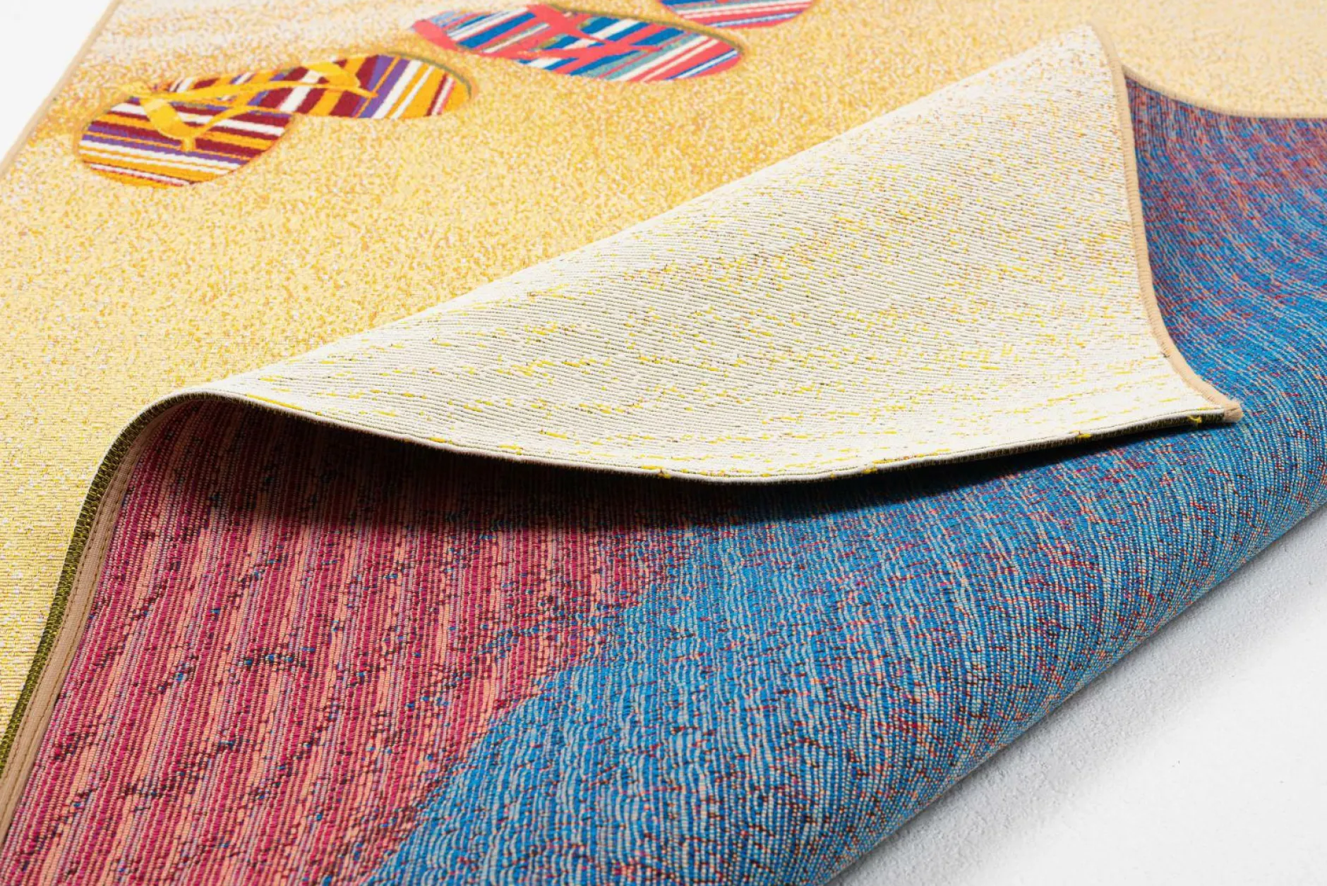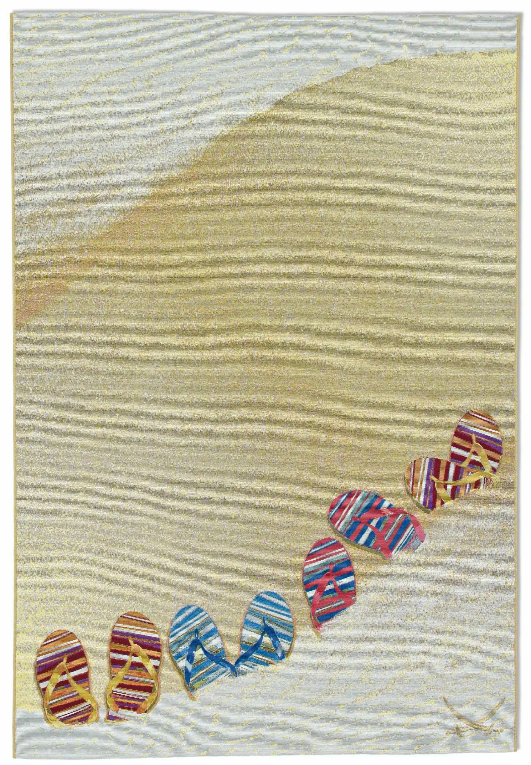 · RANTUM-BEACH – Outdoor / Indoor Teppich der Extraklasse -der gute Laune Teppich für draußen und drinnen Der Artikel RANTUM-BEACH aus der SANSIBAR Kollektion ist ein topaktueller, sehr strapazierfähiger, Outdoor/Indoor-Teppich mit einer farbenfrohen lebensbejahenden Designsprache. Er bringt das berühmte SANSIBAR- Feeling (die Holzhütte am Strand), den herrlichen Nordseestrand mit seinen kreischenden Möwen, das komplette Syltflair (“Urlaub, Freizeit und Glück“) auf Ihre Terrasse, in Ihren Garten, in Ihr Wohn-und Esszimmer. Selbst als Küchen- oder Kinderzimmerteppich eignet sich diese robuste Qualität. Beachten Sie auch die Größe 100 x 200 cm, der ideale Strandteppich. Ein “gute Laune Teppich“ für alle Lebensräume! Hergestellt aus hochwertigem schadstoffgeprüftem Polypropylen und Polyester Fasern hält dieses kurze Flachgewebe auch der größten Beanspruchung stand und erfreut Sie jahrelang mit einem makellosen Aussehen. Die verwendeten sehr widerstandsfähigen Synthetik Fasern bringen noch weitere hervorragende Nutzungseigenschaften mit sich, wie die Feuchtigkeits- und UV-Strahlen Resistenz. Diese Kombination von Material und Nutzungseigenschaften macht diesen Teppich zu einem einzigartigen Allrounder in ihrem Innen- und Outdoor- Wohnbereich. Die meisten Flecken lassen sich leicht mit einem feuchten Tuch entfernen und bei hartnäckigen Flecken greifen Sie einfach zu einem handelsüblichen Teppichschaum. Das verarbeitete Material trocknet bei Nässe schnell wieder aus, ohne sich zu verfärben oder gar abzufärben, was selbstverständlich für die Farbechtheit dieses Produktes steht. Auch in Räumen mit Fußbodenheizung kann dieser Teppich problemlos ausgelegt werden.