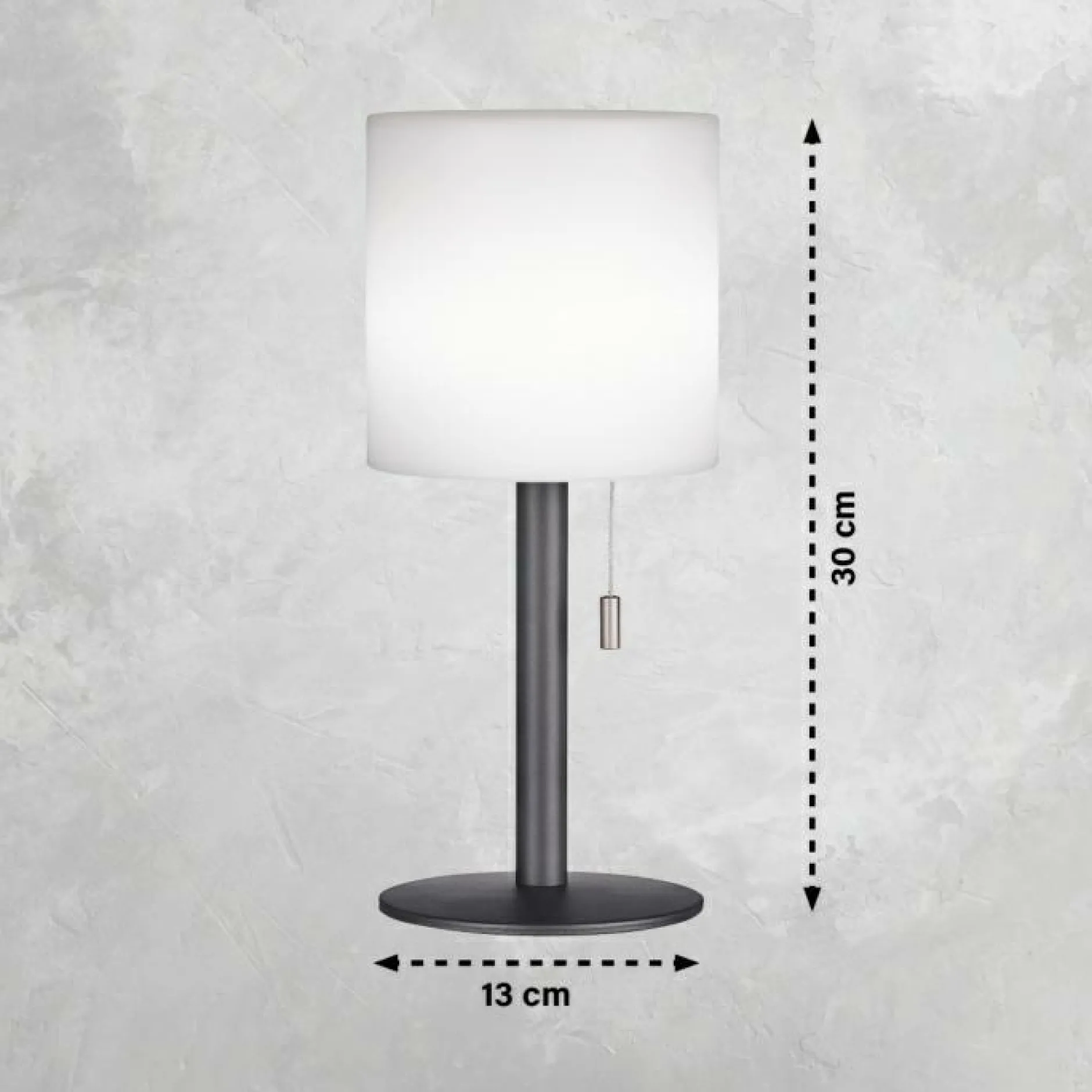 · mit Zugschalter in 2 Stufen dimmbar