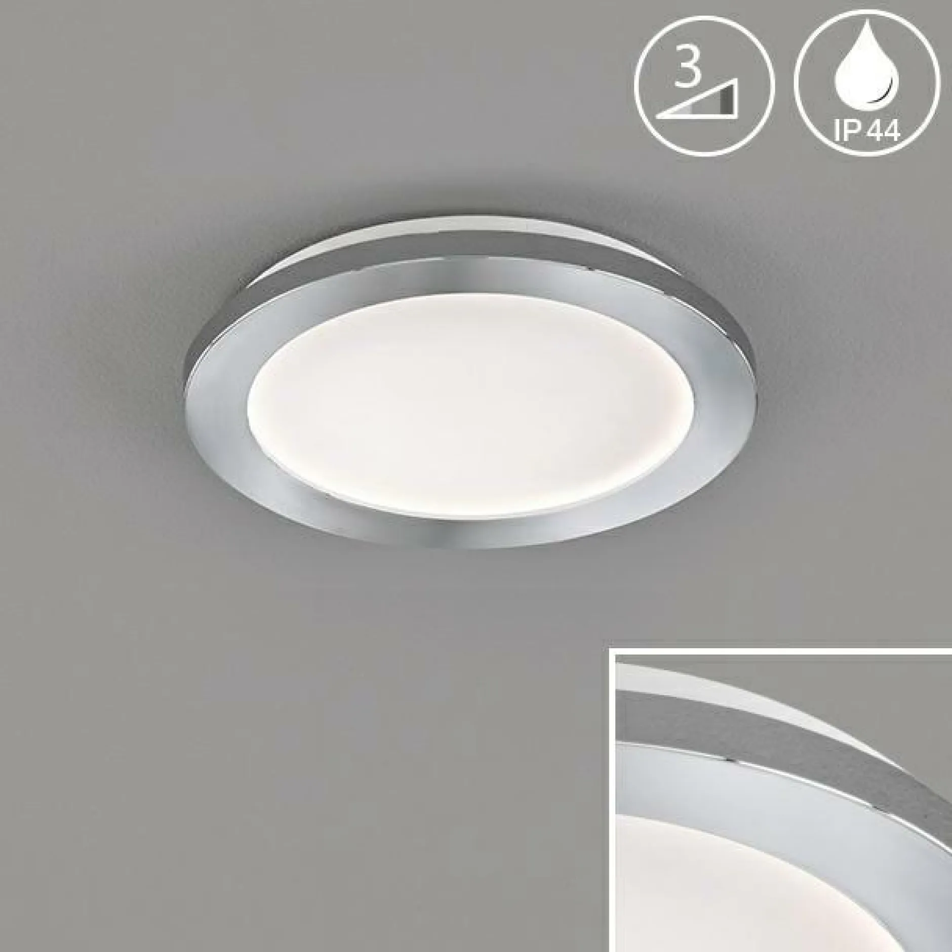 · SPRITZWASSERGESCHÜTZTE BADLAMPE: Die Deckenbeleuchtung besitzt eine IP44-Zertifizierung. Dadurch ist sie spritzwassergeschützt und kann auch in feuchten Räumen wie Bädern angebracht werden.