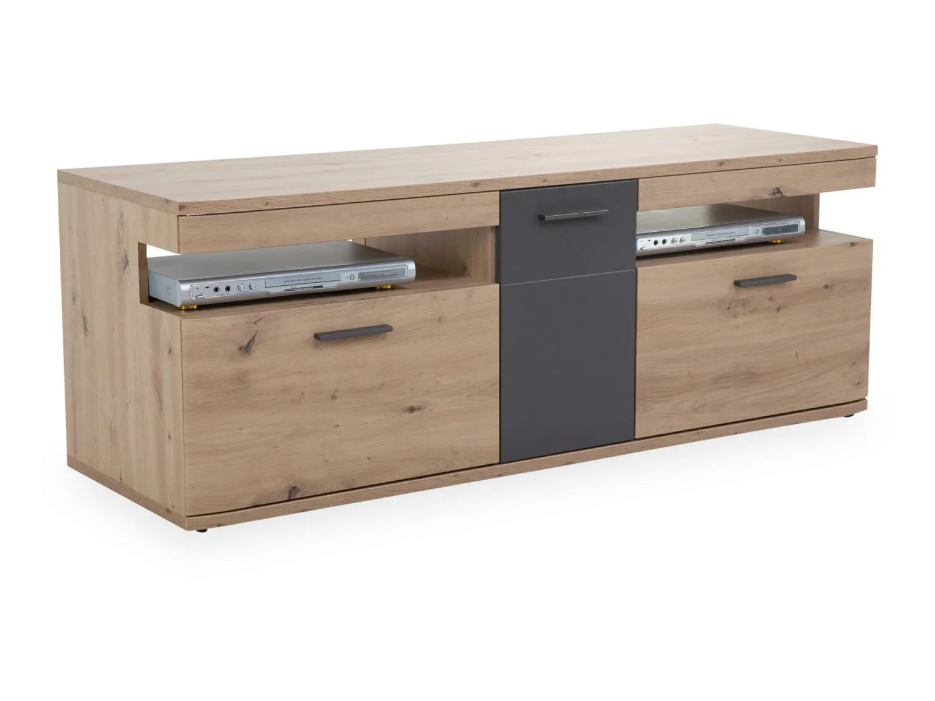 · mit einer Tür, zwei Schüben und zwei offenen Fächern
