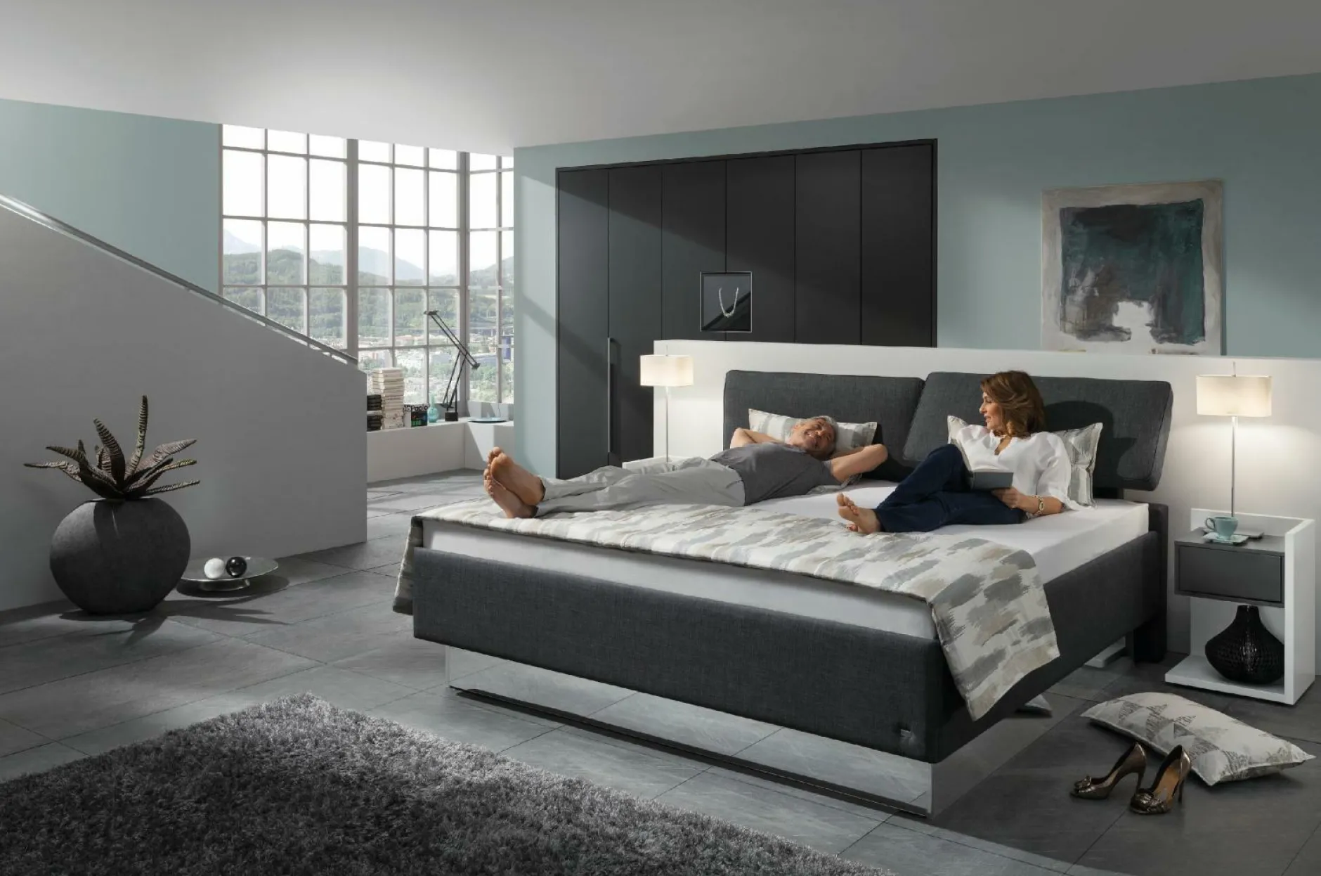 Das Polsterbett Composium von RUF Betten erscheint in einem stilsicheren Design. Das Kopfteil, der Unterbau und die Sockelblende erscheinen einheitlich und das Bett kommt in einer Super-Komforthöhe. Das manuell verstellbare Kopfteil sorgt für ein flexibles Schlaferlebnis. Die zwei Matratzen kommen mit 5-Zonen-Taschenfederkern, wodurch Sie ein erholsames und komfortables Schlafgefühl erhalten.