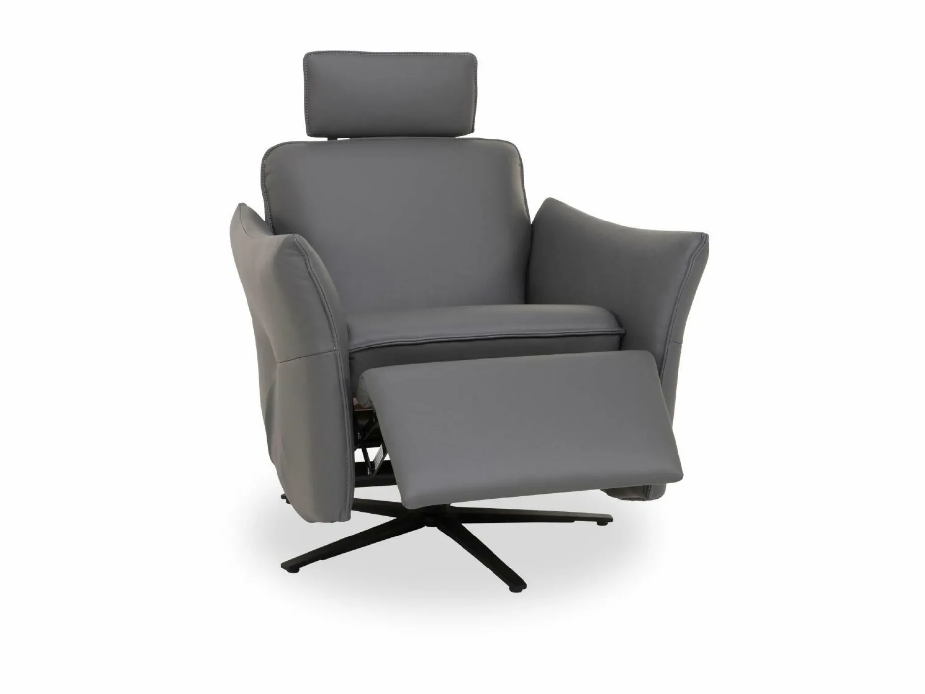 Dessin: echt Leder K-24 schiefer, mit Kontrastnaht, mit elektrischer Verstellung, Sitz Superlastic soft, Sitzhöhe ca. 47cm, Gestell pulverbeschichtet anthrazit, Rücken echt bezogen