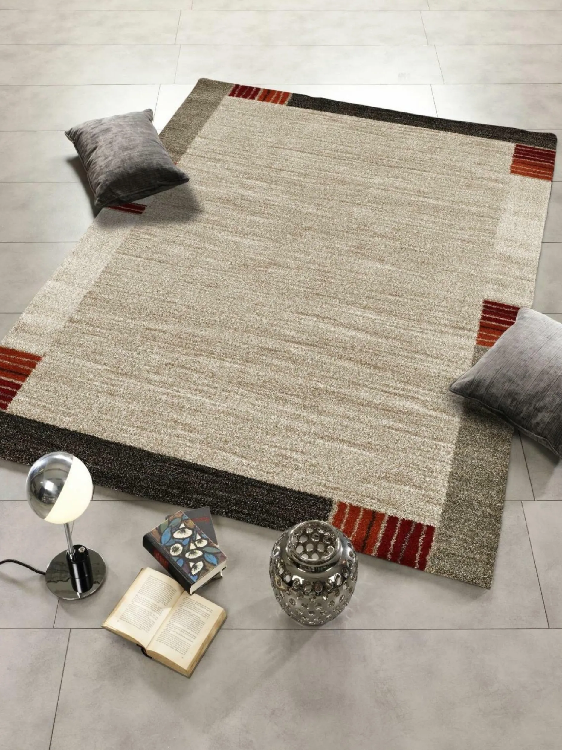 · geschmackvolle Eleganz und behagliche Gemütlichkeit vereinen sich in diesem Teppich! Der traditionelle Schnitt aus weitläufig-ebenmäßigem Innenfeld und umrandender, gemusterter Bordüre erhält seinen besonderen Pfiff durch die bedacht gesetzten, farblich Florhöhe: 20 mm