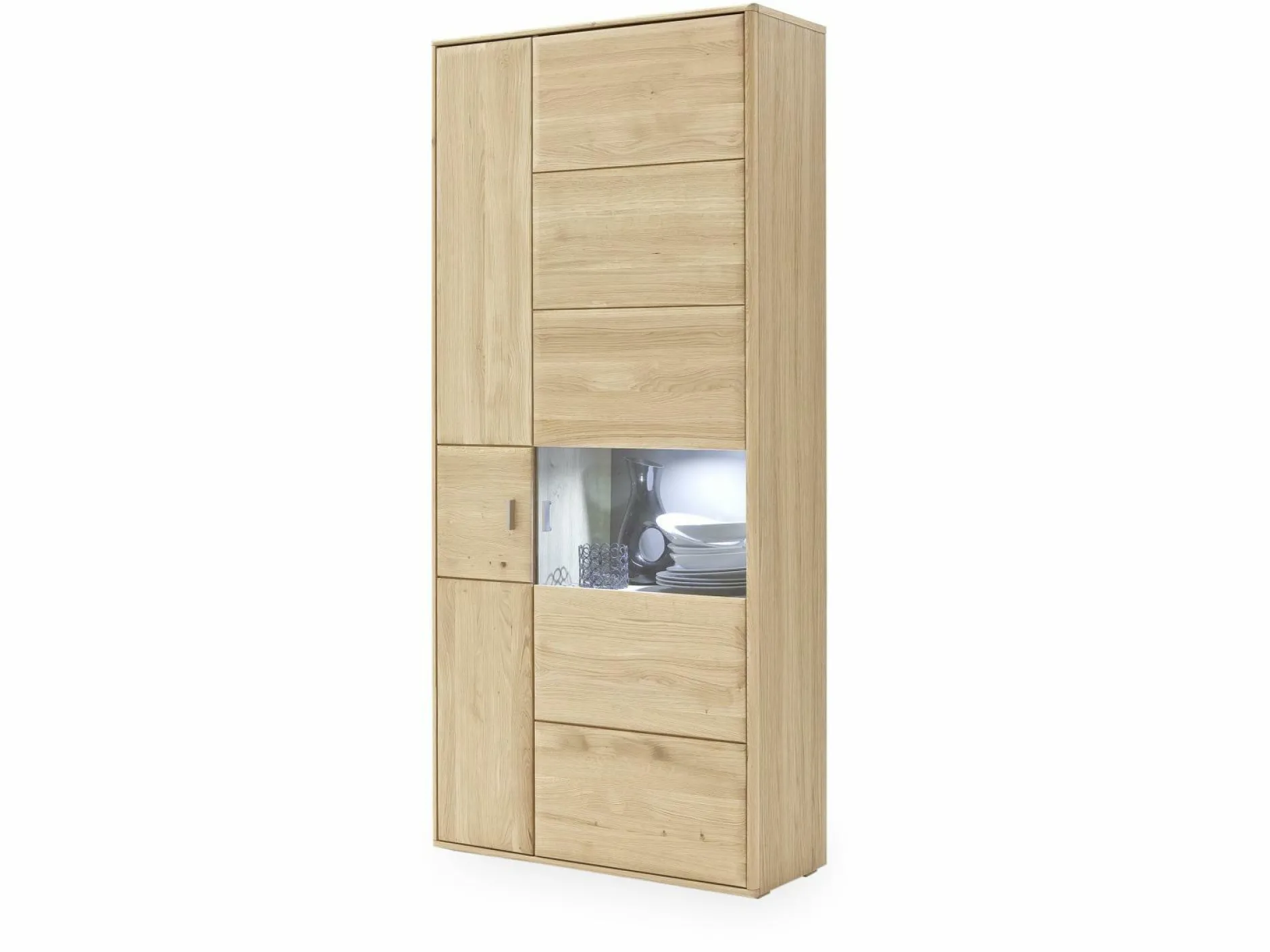 Die Kombi-Vitrine Tarragona von MCA besitzt ein zeitloses Design, das in viele Einrichtungsstile integrierbar ist. Bei dem Material handelt es sich um Eiche Bianco teilmassiv, wobei die Oberfläche geölt ist. Sowohl durch die Form als auch durch die Farbe spiegelt dieses Möbelstück einen schlichten, aber schicken Stil wider. Hinter den beiden großen Türen können Sie diverse Gegenstände wie Geschirr etc. wunderbar verstauen. Durch den Glaseinsatz können Sie Ihre Lieblingsgegenstände sogar zur Schau stellen. Ob im Wohn- oder Esszimmer – diese Vitrine ist nicht nur super schön, sondern dazu im Alltag auch noch sehr nützlich.