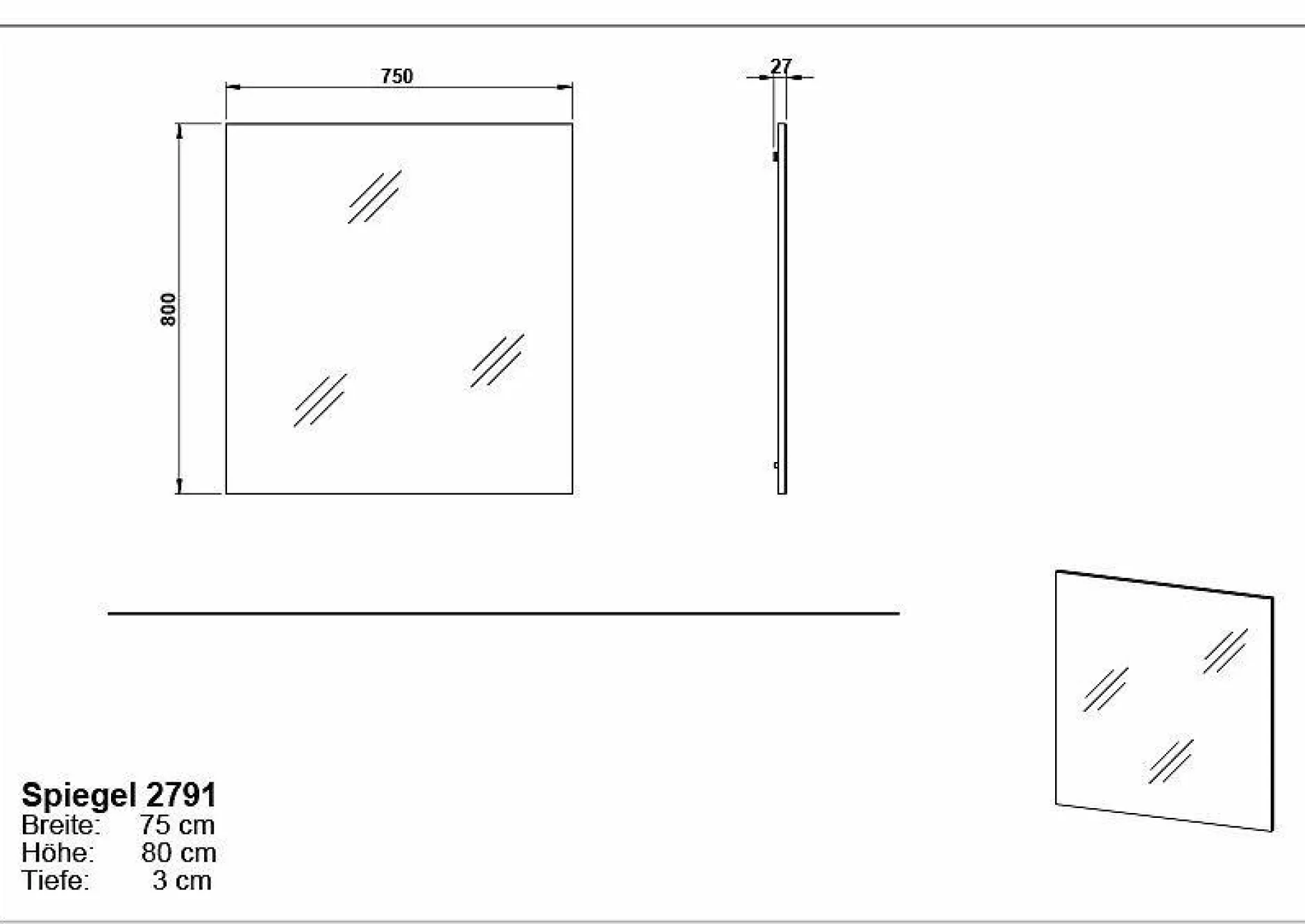 · Spiegel auf beschichteter Trägerplatte, Melaminharzbeschichtung, Made in Germany.