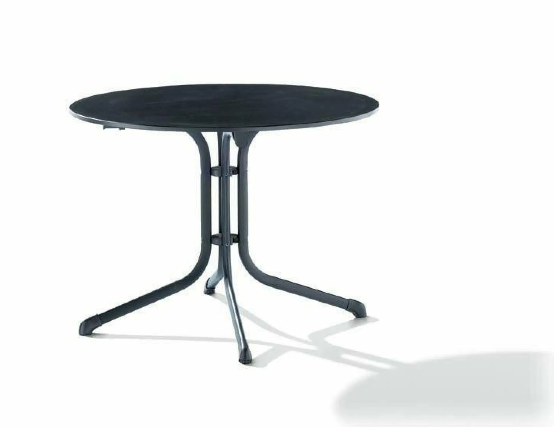 · Der Boulevard-Klapptisch 3145-55 hat ein eisengraues Gestell aus polyesterbeschichtetem Profil-Stahlrohr mit einer Rohrstärke von 35 x 28 mm und eine formschöne vivodur®-Schieferdekorplatte in anthrazit. Der Tisch hat einen Durchmesser von 100cm. Durch die Polyesterbeschichtung wird das Gestell unempfindlich gegen Witterungseinflüsse. Die Höhe des Tisches beträgt ca. 73 cm. Damit der Tisch auch auf unebenen Flächen einen festen Stand hat, wurde er mit einem Höhenausgleich ausgestattet. Durch seine Klappfunktion ist der Tisch sehr einfach in der Handhabung. Ein weiterer Pluspunkt für diesen Artikel ist, dass er montagefrei angeliefert wird. So können Sie den Tisch sofort nach Erhalt problemlos in Gebrauch nehmen. Insgesamt profitieren Sie bei diesem Artikel von der jahrzehntelangen Erfahrung die SIEGER bei der Herstellung von Gartenmöbeln vorweisen kann. Der Tisch lässt sich ideal mit Möbeln aus dem SIEGER-Sortiment kombinieren!