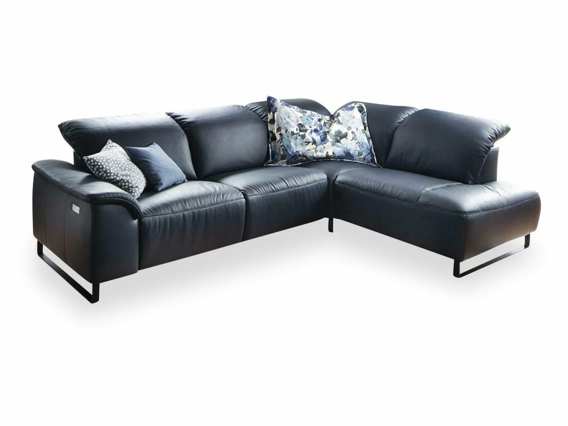 Vollenden Sie Ihre Wohlfühloase mit der Polsterecke Atla aus dem Hause MONDO. Das schicke Design ist dabei ein absoluter Hingucker, der Familie und Freunde staunen lassen wird. Das gemütliche Sofa, inklusive Rücken ist mit einem navyfarbenem Lederbezug bezogen. Passend dazu runden die schwarzen Kufenfüße das Design perfekt ab. Für ein angenehmes Sitzgefühl sorgt die Polsterung bestehend aus Wellenunterfederung und die Kopfteilverstellung.