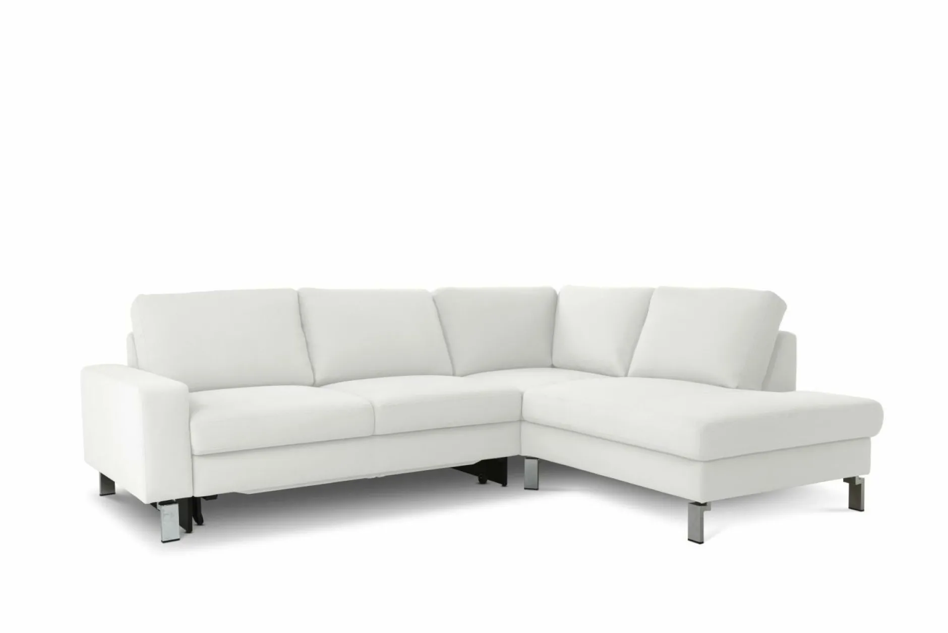 Verwandeln Sie Ihren Wohnraum in eine Wohlfühloase mit der Polsterecke Collins aus dem Hause 3C CANDY. Das schlichte, aber dennoch elegante Design integriert sich wunderbar mit nahezu jedem Wohnkonzept. Der Bezug ist aus Leder und in verschiedenen Farben erhältlich. Der Rücken ist echt bezogen. Die matten Chromfüße sorgen für einen stabilen Stand. Die Polsterecke besteht aus einem 2-SItzer links mit Querschläfer und einer Umbauecke medium rechts mit zusätzlichem Stauraum. Die Armlehne ergänzt den Komfort und ist ca. 19 cm breit. Die Sitzhöhe beträgt 45 cm und die Sitztiefe 56 cm, die zu einem angenehmen Sitzgefühl beitragen. Auf Wunsch sind Kopfstütze und Kissen erhältlich.