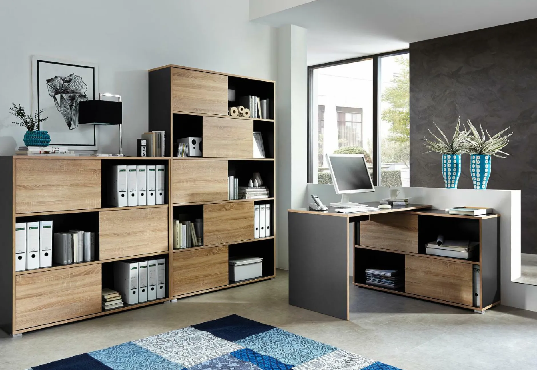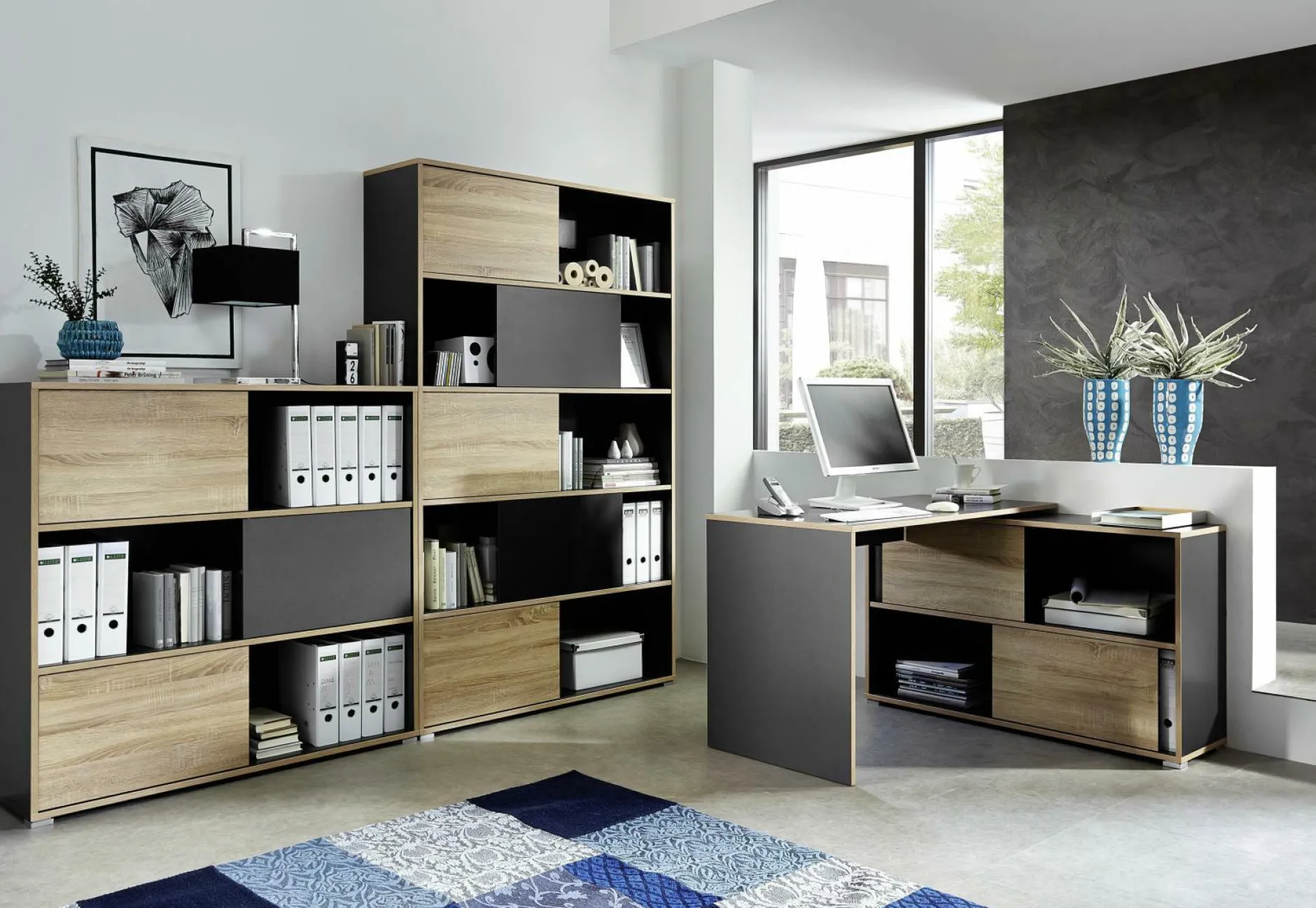 · Schiebetüren beidseitig verwendbar: schwarz oder Sonoma Eiche