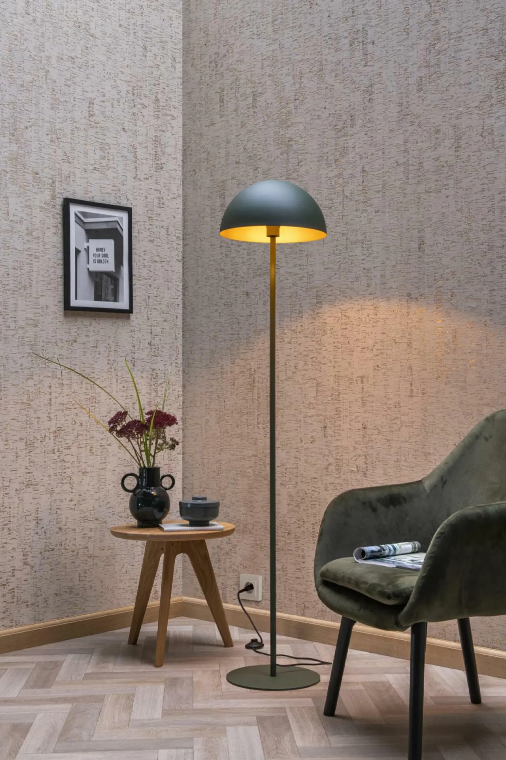 · Zwei Top-Elemente für eine gelungene Stehleuchte in Ihrem Wohnzimmer? Das sind die Retro-Vibes und das moderne Aussehen von Siemon. Diese Stehleuchte ist aus hochwertigem Stahl gefertigt und hat eine Höhe von 160 Zentimetern. Durch sein Design wirkt Siemon niedlich und modern zugleich. In der Mitte des halbrunden Lampenschirms befindet sich die Lichtquelle. Das Licht spiegelt sich mühelos an den Wänden des Schirms. Das macht die Stehlampe zu einer angenehmen Erscheinung in Ihrem Interieur. Schalten Sie Siemon mit dem Schalter im Kabel ein und aus.