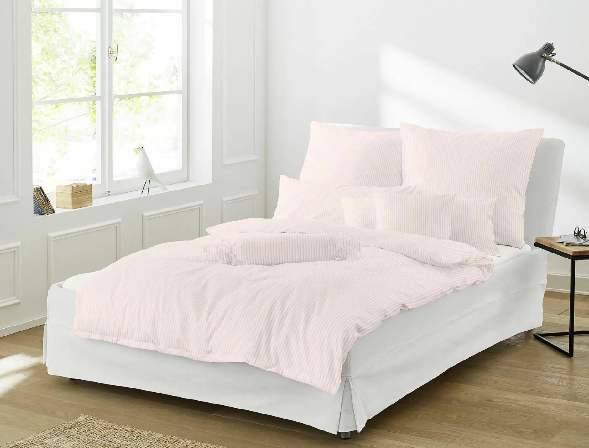 · Der klassische Uni-Interlock-Jersey Lumen besticht durch seine einzigartigen Eigenschaften und dem ausgeprägten Streifen-Look! Dieser Artikel verspricht Entspannung auf höchstem Niveau! Genießen Sie einen luxuriösen Schlafkomfort durch die seidenweiche Premium-Jersey-Bettwäsche. Die traumhaft weiche und hautsympathische Strickware aus 100% supergekämmter Baumwolle beeindruckt mit einem charakteristischen Seidenglanz und atmungsaktiven sowie feuchtigkeitsregulierenden Eigenschaften. Vom ersten Produktionsschritt bis zum Versand wird auch diese besondere Qualitätsbettwäsche in unserem Werk im Münsterland gefertigt. Die bügelfreie und trocknergeeignete Qualität ist durch aufwendige Produktionsmethoden verzugsfrei und besonders pflegeleicht im Alltag. Die feinfädigen Garne sorgen für ein höchst anspruchsvolles Schlafgefühl. Ein verdeckter Qualitäts-Reißverschluss erleichtert Ihnen zudem das schnelle Auf- und Abziehen der Wäsche. Durch das klassische Design des Artikels Lumen, verwandeln Design Sie Ihr Schlafzimmer im Handumdrehen in eine elegante Wohlfühloase für das ganze Jahr. Außerdem ist jede unserer Bettwäschen dieser Serie sanforisiert. Dies bedeutet, dass durch eine spezielle Produktionstechnik die Bezüge nach dem Waschen und Trocknen formstabil bleiben und keinerlei Verzug aufweisen. Wie alle unsere Textilien ist auch unsere Interlock-Jersey-Qualität aus hochwertigen Grundgeweben und ausschließlich nach dem Oeko-Tex-Standard 100 hergestellt und zertifiziert. Dieses Siegel sagt aus, dass der Artikel Lumen inkl. all seiner Bestandteile von dem unabhängigen Institut Hohenstein auf Schadstoffbelastung geprüft wurde. Einzeln verpackte Nackenrollen und Kissen in verschiedenen Maßen zusätzlich erhältlich. Waschbar bei 60 Grad Celsius.