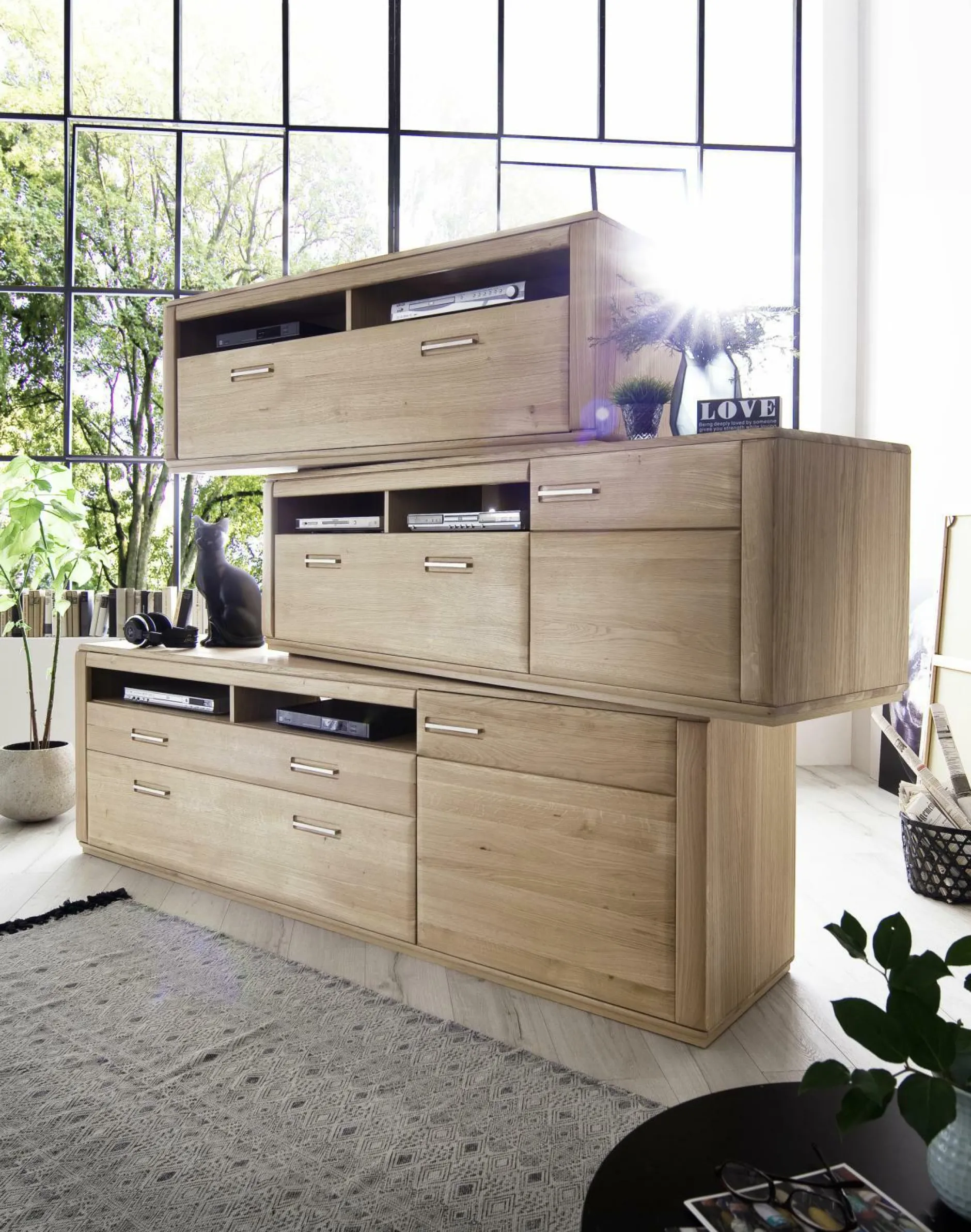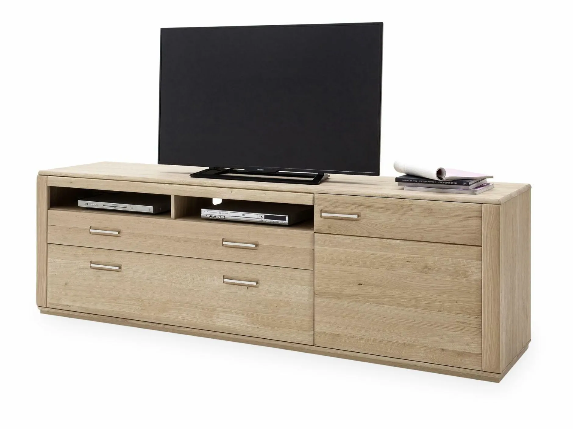 Dieses Lowboard lässt sich ideal in jede Wohnung integrieren. Alle Qualitäten und Highlights der Marke MCA werden in der Kommode zusammengeführt. Das moderne Design harmoniert optimal mit geradezu jedem Einrichtungskonzept. Das Modell SENA hat eine Gesamtbreite von 223 cm, eine Höhenabmessung von 69 cm und eine Tiefe von 51 cm. Diese Kommode verleiht Ihrem Zuhause ein behagliches Flair.