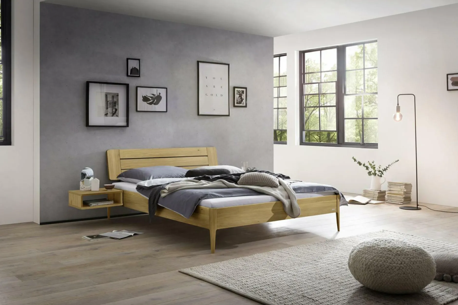 · Für Minimalisten und Überflieger ? Der Nachttisch «Seva» bietet doppelte Abstellfläche ohne viel Raum einzunehmen. Am Bettrahmen montiert, wirken Nachttisch und Bett wie aus einem Guss und verleihen jedem Schlafzimmer einen luftigen Look.