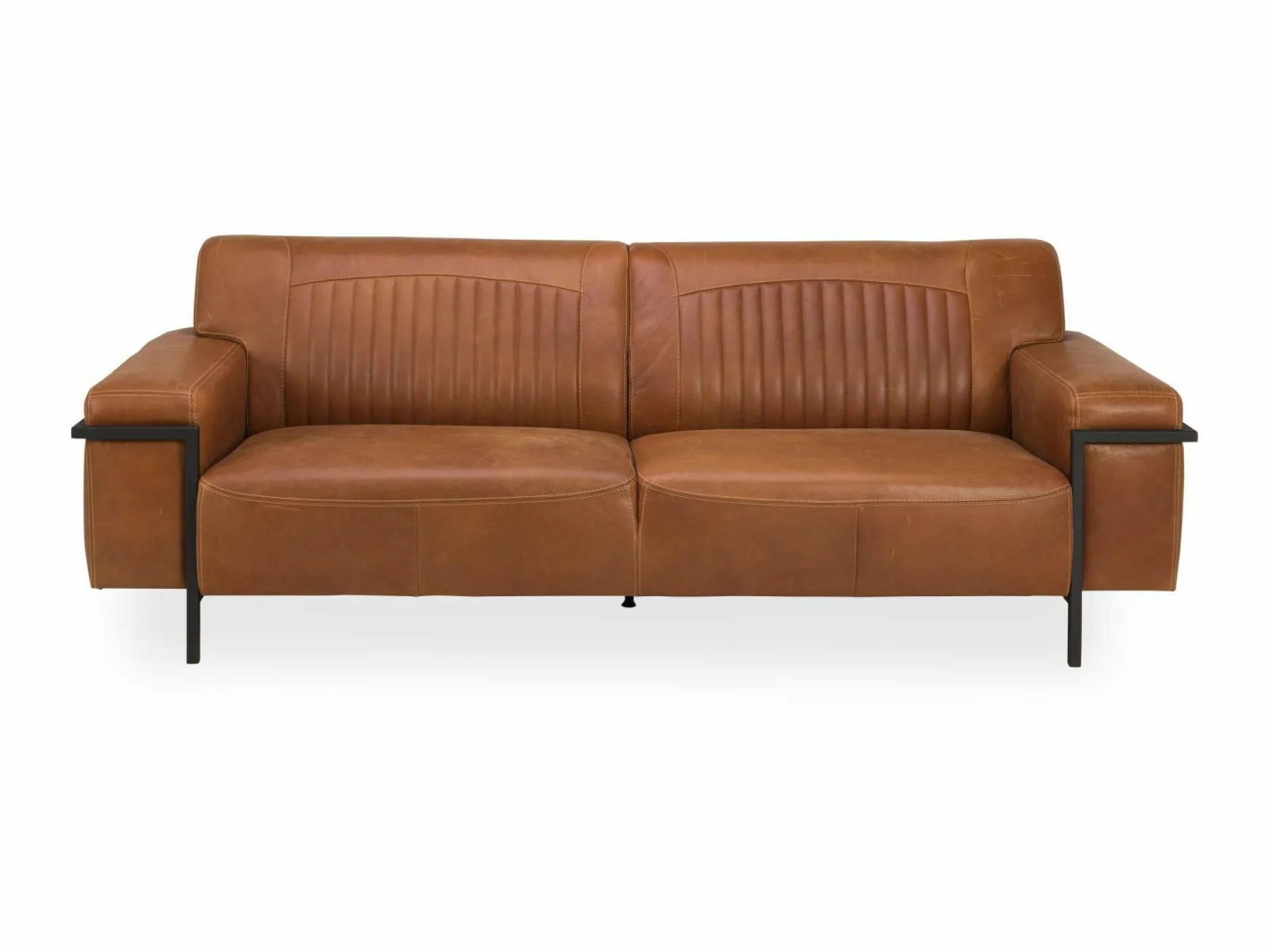 Setzen Sie mit dem Sofa Bonanza einen außergewöhnlichen und stilvollen Akzent in Ihrem Wohnraum. Der moderne 3 Sitzer ist mit dem hochwertigen Echtleder Cowboy bezogen. Hellbraune Kontrastnähte und die besondere Steppnaht in der Rückenlehne verleihen dem Design einen besonderen Charme. Der Rücken ist echt bezogen und ermöglicht ein freies Aufstellen im Raum. Durch die extravagante Platzierung der schwarzen Eisenfüße entsteht der Eindruck, als würde das Sofa im Raum schweben. Die Sitzhöhe beträgt komfortable 44 cm.