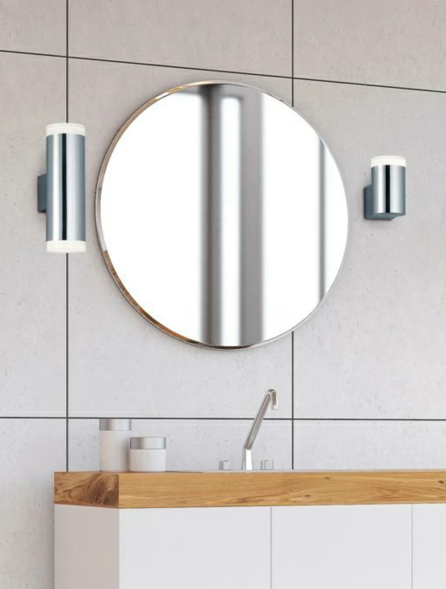 · Die Wandleuchte RAY besticht durch ihr modernes Design in Verbindung mit schlichter Eleganz. Aufgrund der Schutzart IP44 ist die Wandleuchte gegen Spritzwasser geschützt und kann perfekt im Badezimmer angebracht werden. Dank up & down Beleuchtung wird das Licht intensiv nach oben und unten gestreut, wodurch ein harmonisches Lichtspiel entsteht. Damit sorgt die Leuchte bei einer Platzierung zu beiden Seiten des Spiegels für optimale Lichtverhältnisse im Waschbereich des Badezimmers. Mit einer Größe von 5,2×16,6cm ist die Wandleuchte für jede gängige Badgröße bestens geeignet. Die Kombination aus Chrom und weiß fügt sich ideal in verschiedene Badkonzepte ein und sorgt für ein wohlfühlendes Ambiente. Darüber hinaus verfügt die Leuchte über eine moderne LED Technologie, die sich durch eine hohe Lichtqualität und Energieeffizienz auszeichnet. Im Vergleich zu herkömmlichen Halogen Leuchtmitteln lassen sich bis zu 80% der Energiekosten sparen. Zusätzlich haben LED Lichtquellen eine lange Lebensdauer, produzieren weniger Wärme und schonen die Umwelt.