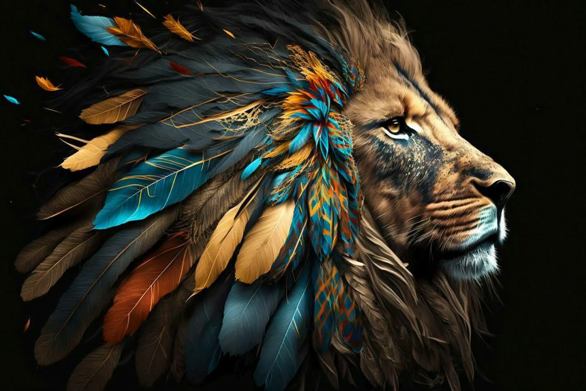 · Majestät in Farben! Die leuchtenden Blau-, Gold- und Brauntöne auf dunklem Grund erzeugen visuelle Spannung. Ein Statement für Räume mit Charakter. Ideal für moderne Wohnkonzepte und repräsentative Geschäftsräume