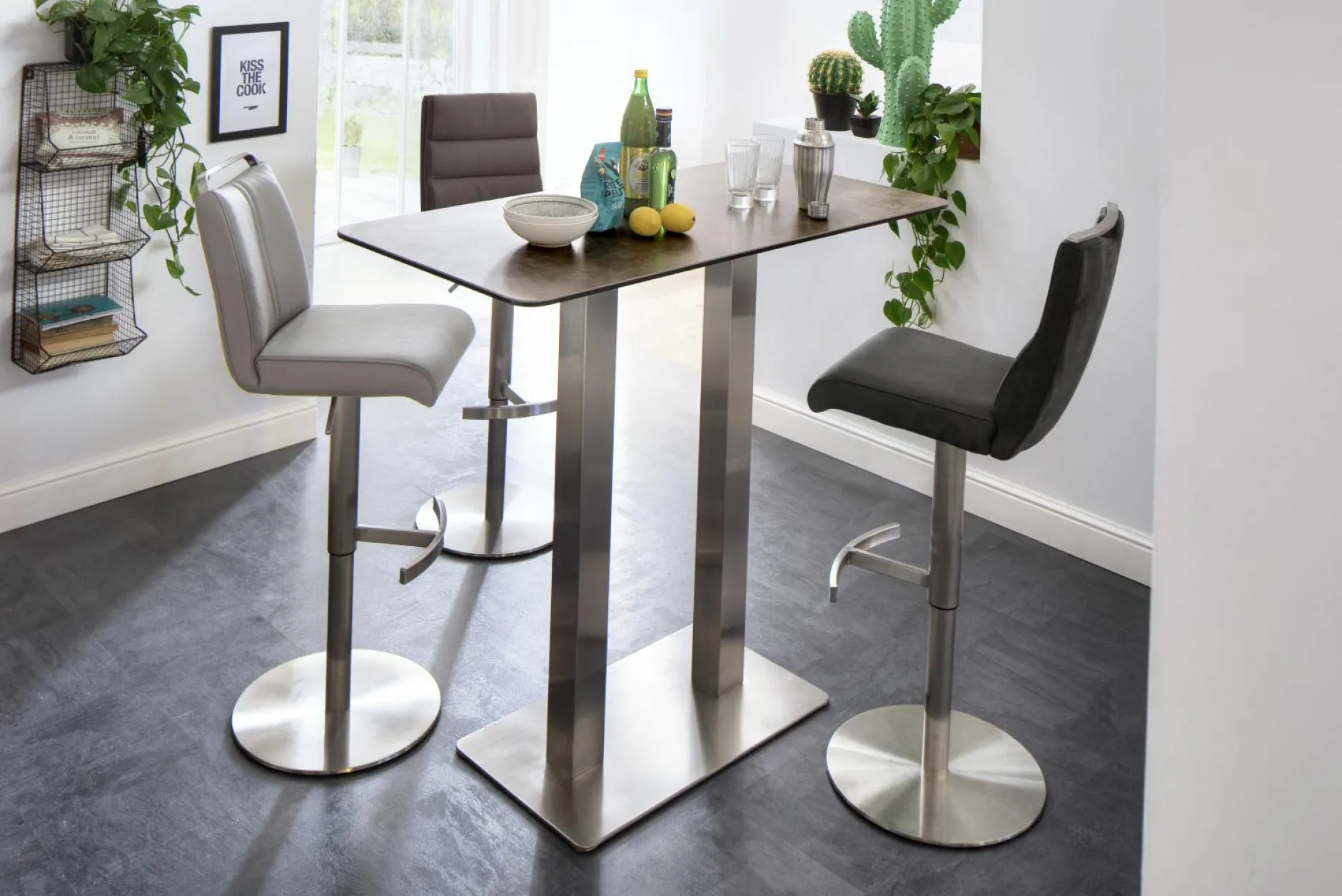 GIULIA C BARSTUHL AN LEDER ANTHRAZIT, RUND EDELST.GEB.H:88-113CM,GRI