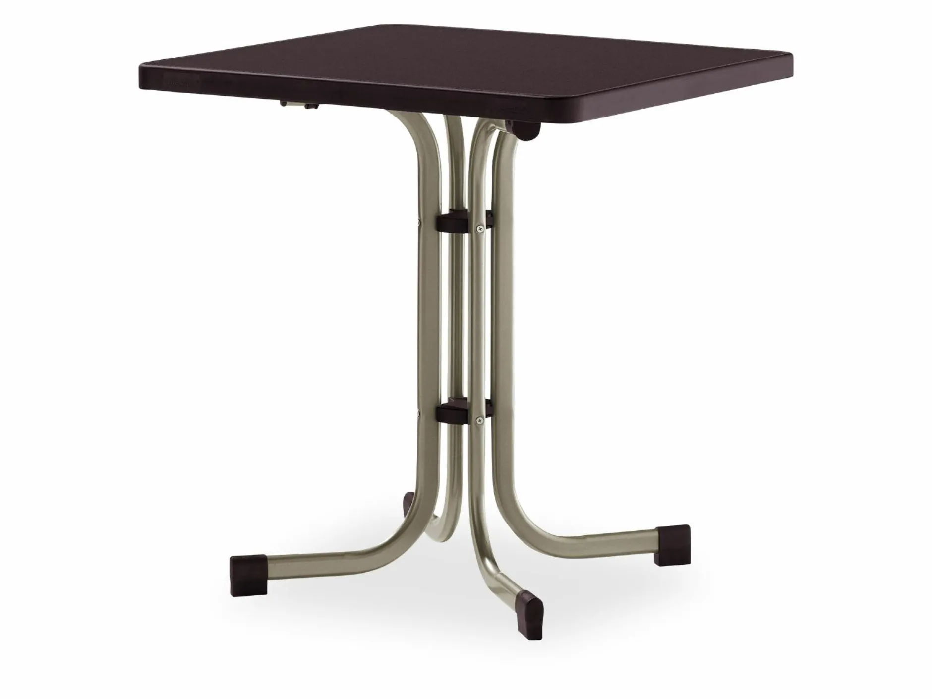 · Der Tisch 231/C-M hat ein Gestell aus champagnerfarbenem polyesterbeschichtetem Stahl-Flachovalrohr mit einer Rohrstärke von 35 x 20 mm, sowie eine moccafarbene Original mecalit®-Pro Schieferdekorplatte mit Strukturrand in mocca. Durch die Polyesterbeschichtung wird das Gestell unempfindlich gegen Witterungseinflüsse. Die Höhe des Tisches beträgt ca. 72 cm. Damit der Tisch auch auf unebenen Flächen einen festen Stand hat wurde er mit einem Höhenausgleich ausgestattet. Durch seine Klappfunktion ist der Tisch sehr einfach in der Handhabung. Ein weiterer Pluspunkt für diesen Artikel ist, dass er montagefrei geliefert wird. So können Sie den Tisch sofort nach Erhalt problemlos in Gebrauch nehmen. Der Tisch kann ideal mit Möbeln aus dem SIEGER-Sortiment kombiniert werden. Bei diesem Artikel profitieren Sie von der jahrzehntelangen Erfahrung die SIEGER bei der Herstellung von Gartenmöbeln vorweisen kann.
