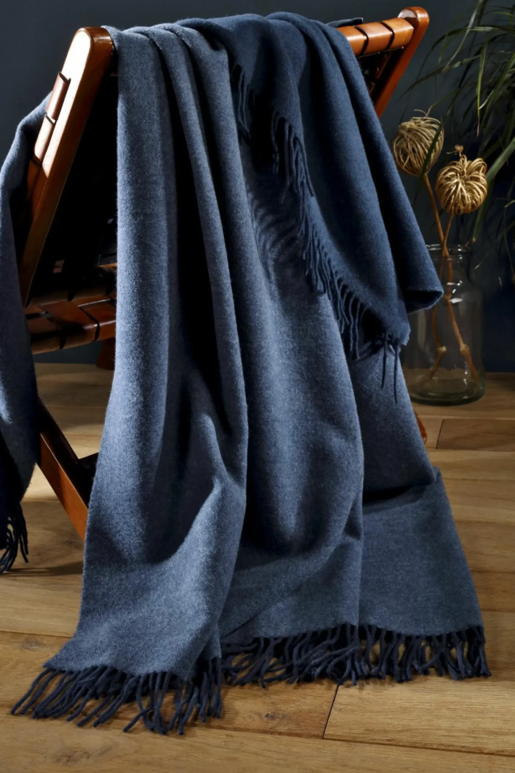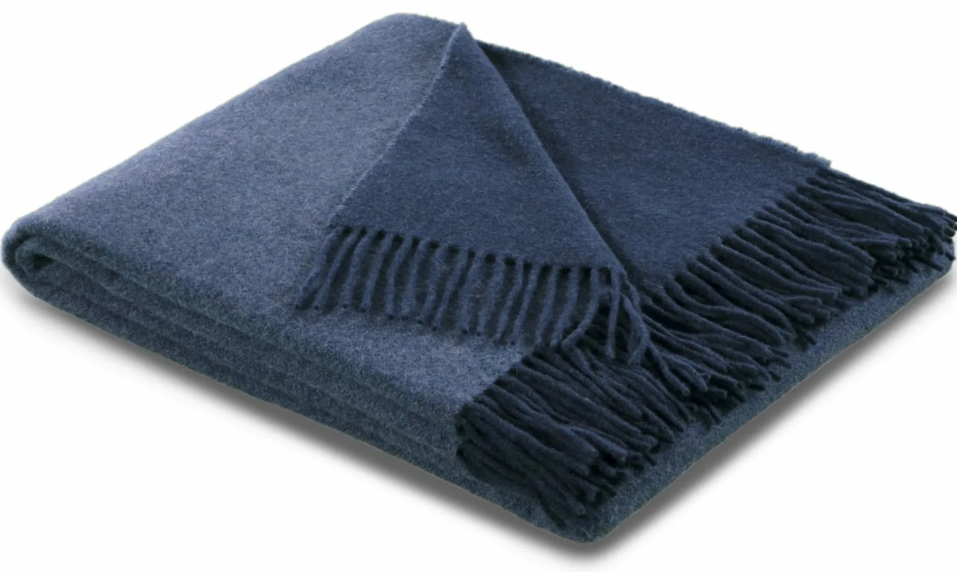 · Dieses luxuriöse Kaschmir-Plaid edlem Wolle-Kaschmir-Mix vereint Eleganz und Gemütlichkeit mit einem modernen Doubleface-Look in angesagtem Jeansblau. Die Fransen sind in derselben Farbe gehalten wie die dunkelblaue Rückseite. Das hochwertige, zweifarbige Plaid setzt besondere Akzente in der Einrichtung und wärmt wunderbar.