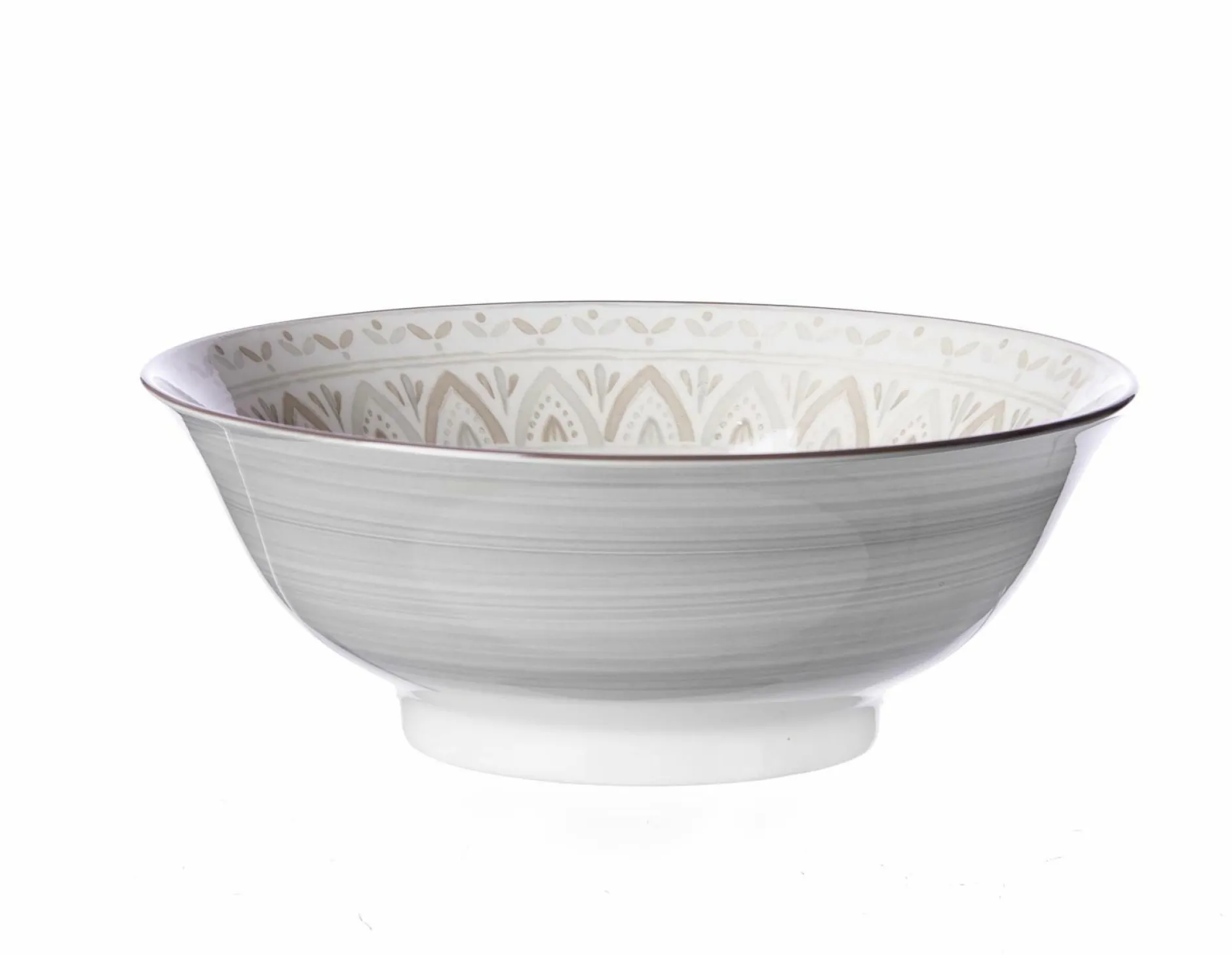 Für eine geschmackvolle Abrundung des gedeckten Tischs sorgt die Schale Valencia von Ritzenhoff und Breker. Die Schale aus Steinzeug präsentiert sich mit einem hübschen Muster im Inneren in Braun-Grau-Weiß und einer äußeren Gestaltung in Grau und kann so optisch auf ganzer Linie überzeugen.
