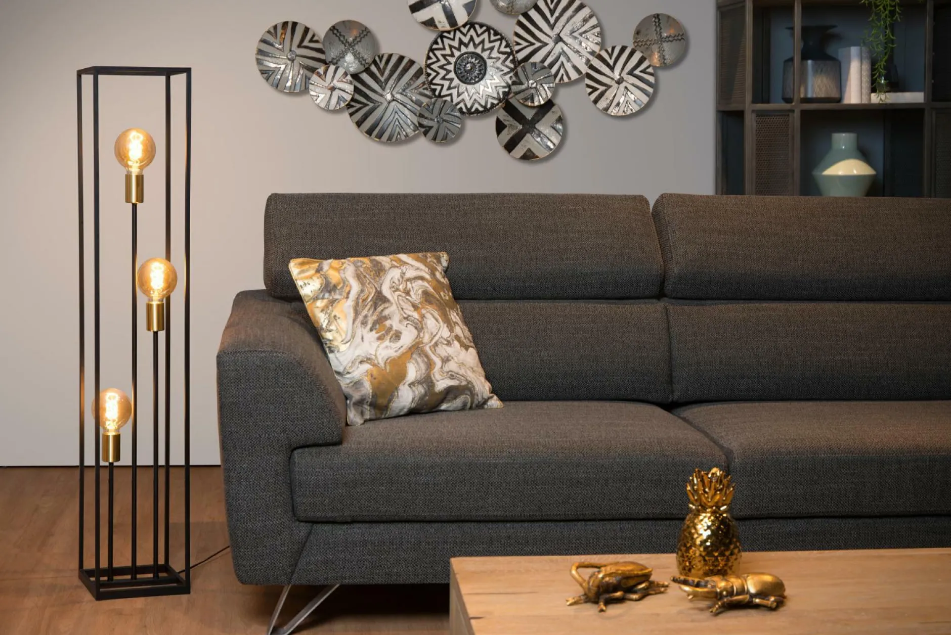 · Eine Stehlampe darf auffallen. Und das ist es, was Ruben tut, denn heißt diese Lampe, wegen seines simplen, modernen Designs. Der Metallrahmen in Kombination mit der Kupferfassung strahlt Behaglichkeit aus. Die Anordnung der drei Leuchten verleiht dem schlanken Design eine spielerische Note. Mit drei Lampen und einer Höhe von 1,20 Metern erzeugt Ruben genügend Licht. Montieren Sie warme, weiße LED-Lampen, um ein stimmungsvolles Leuchten in Ihrem Wohn-, Ess- oder Schlafzimmer zu erzeugen. Sie steuern die Stehlampe mit dem Schalter am Kabel..