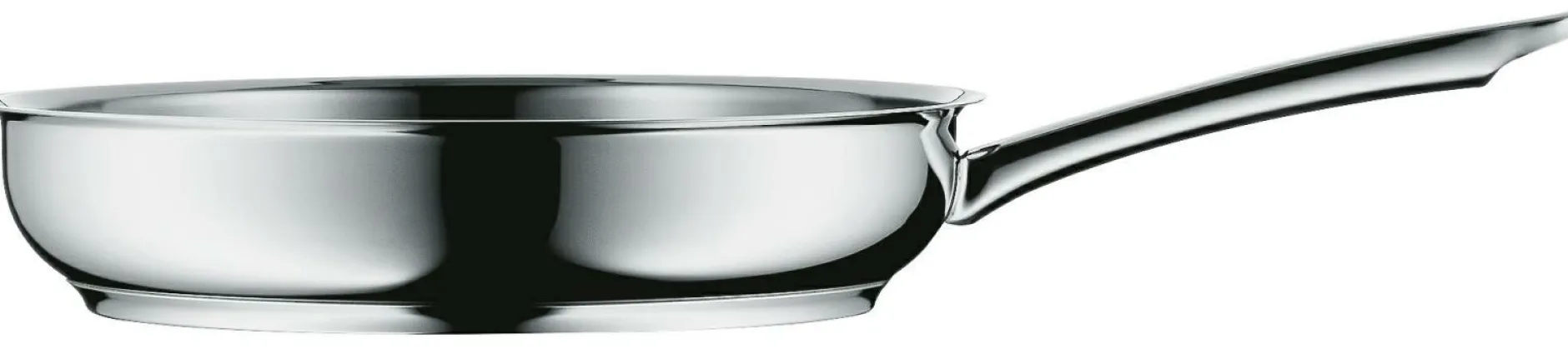 · Werden Sie zum Kochprofi mit den WMF Pfannen der Serie Profi. Die zeitlos schönen und dauerhaft glänzenden Edelstahlpfannen sind aus besonders widerstandsfähigem Cromargan gefertigt. Das hat gleich mehrere Vorteile: Cromargan ist äußerst robust und formstabil strapazierfähig beständig gegen Speisesäuren und absolut geschmacksneutral. Der TransTherm Allherdboden der Profi Pfannen verteilt die Hitze gleichmäßig und speichert sie lange. Geben Sie alles: Braten Sie das Fleisch scharf an lassen Sie Zwiebeln schwitzen und Öl spritzen. Wenden Sie rühren Sie kosten Sie und werden Sie zum Meisterkoch in Ihrer Küche! Die Stiel- und Servierpfannen der Serie Profi sind am Pfannenrand so geformt dass beim Umfüllen oder Servieren nichts danebentropft. Auch wenn sie stark strapaziert werden überzeugen die Pfannen aus hochwertigem Edelstahl auch nach Jahren der Benutzung noch durch Glanz Form und Funktion. Darauf gibt WMF 5 Jahre Garantie.