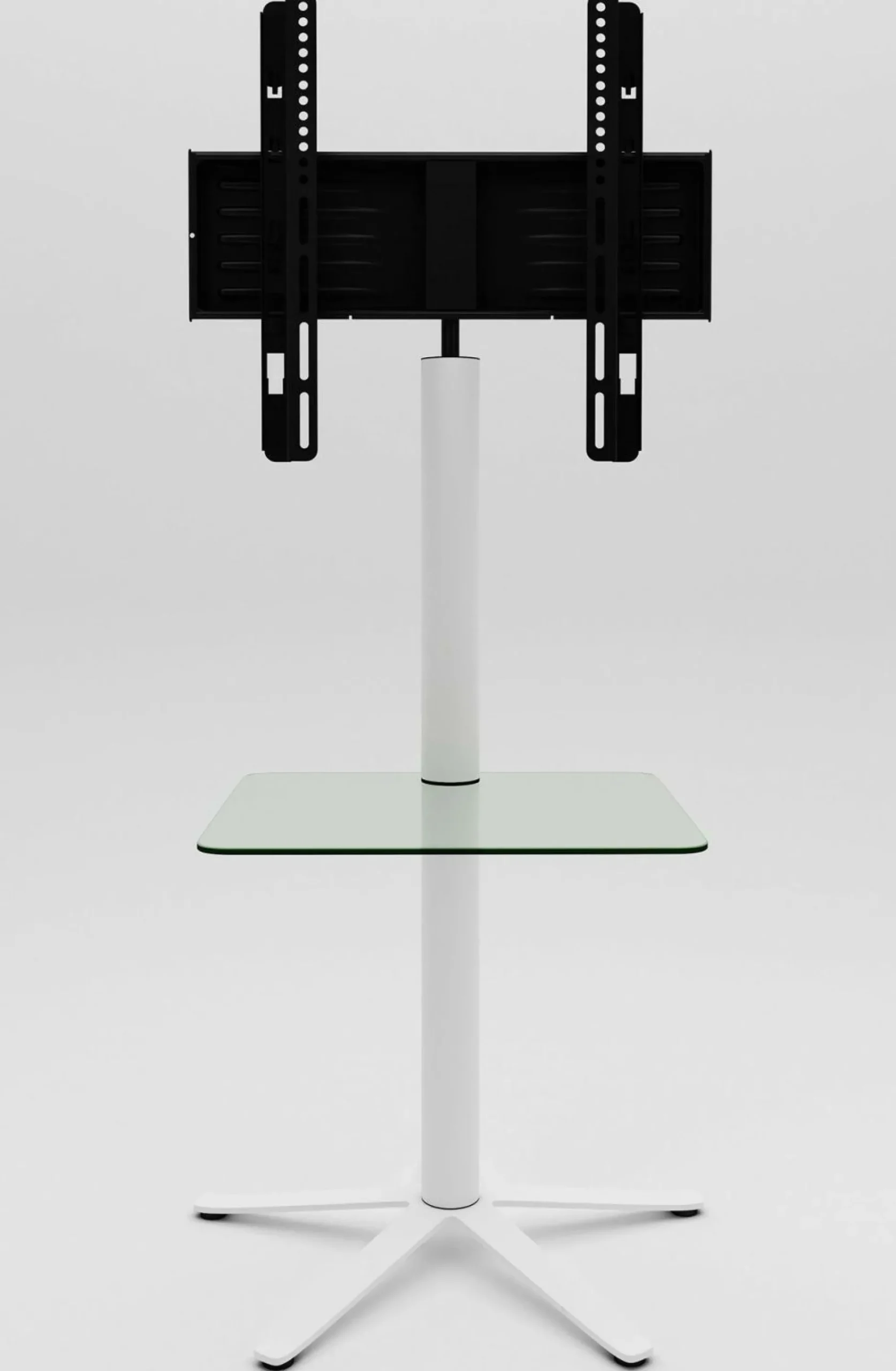 · VCM TV-Standfuß “Xila“ ohne Zwischenboden. Stabiles Standrohr aus Stahl. Halterung um 60 Grad schwenkbar für LED / LCD / PLASMA TV-Geräte von 26-70 Zoll (66-177 cm) bis maximal 40 kg. VESA-Kompatibel mit 200×100 bis 400×400 mm. Verdeckte Kabelführung im Standrohr. Der Boden in moderner Sternoptik aus Stahl sorgt für eine hohe Stabilität. Produktmaße: Höhe 100 x Breite 61,1 x Tiefe 61,1 cm. Maße des Zwischenbodens: B 45 cm, T 39 cm. Belastbarkeit des Zwischenbodens: 10 kg. Material Zwischenboden: ESG-Sicherheitsglas 6mm.