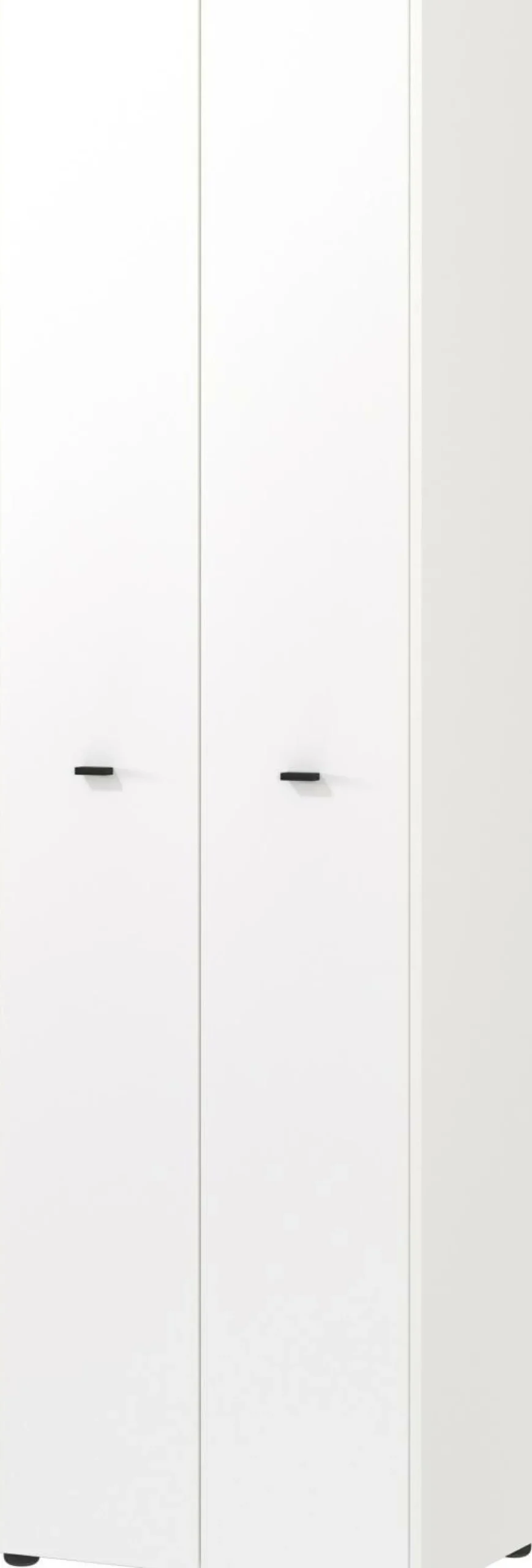 · Garderobenschrank mit zwei Türen, dahinter ein fester Einlegeboden mit ausziehbarer Kleiderstange aus Metall (belastbar bis zu 7 kg) und vier verstellbare Einlegeböden (jeweils belastbar bis zu 10 kg), Unterboden bis zu 10 kg, Ober-, Unter-, und Einlegeböden in Navarra-Eiche-Nb, Rest in Weiß, zwei Steggriffe aus pulverbeschichtetem Metall in Schwarz, vier schwarze Möbelgleiter aus Kunststoff, Türen schließen durch integrierten Dämpfer langsam, sanft und geräuschlos, kratzfeste und widerstandsfähige Oberflächenbeschichtung, stoß- und schlagfeste Kanten, umweltfreundlich, ohne Styropor verpackt, Made in Germany.