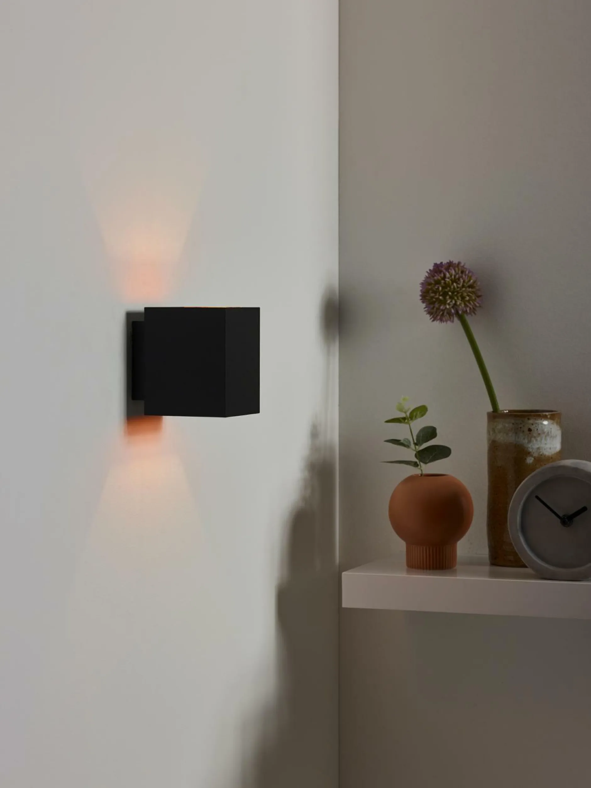 · Schwarz ist gleichzeitig modern und zeitlos. Das beweist die Xera Wandlampe. Mit ihren geradlinigen Linien passt diese Wandlampe zu jedem modernen und warmen Interieur. Die goldene Farbe der Innenseite erzeugt ein weiches und warmes Licht. Der würfelförmige Schirm erzeugt eine symmetrische Lichtverteilung über und unter der Lampe. Verwenden Sie diese Wandlampe als Blickfang oder zur Akzentuiering einer bestimmten Wand. Platzieren Sie einige Exemplare nebeneinander und schmücken Sie den Flur oder das Wohnzimmer.