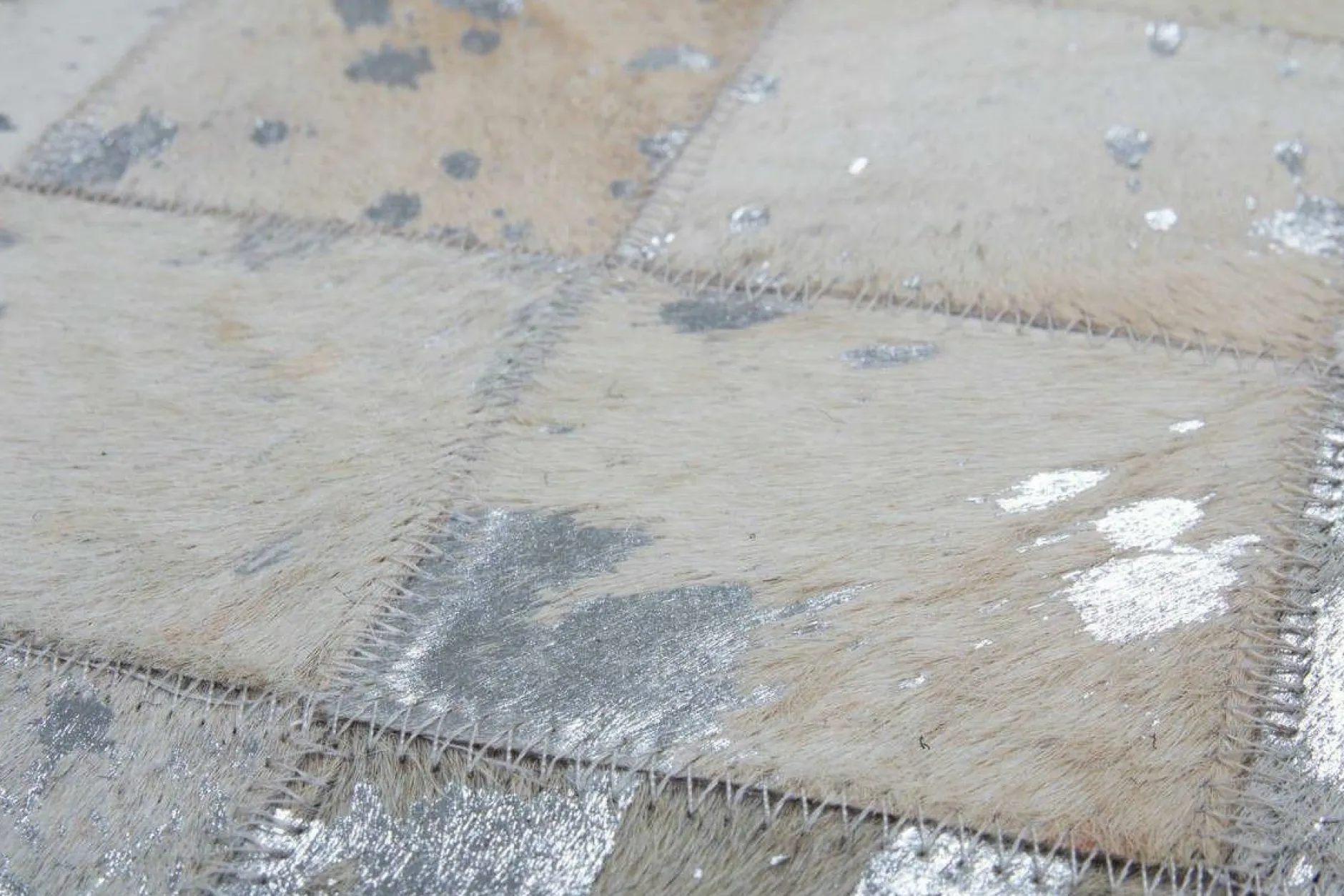 · Dieser hochwertige Patchwork-Teppich aus 100% Leder gibt Ihrer Einrichtung einen modernen und individuellen Touch. Von Hand gefertigt ist jeder einzelne Lederteppich ein Unikat. Die Verwendung von edlen Naturmaterialien und die hochwertige Verarbeitung sorgen für ein dynamisches Aussehen, das seinesgleichen sucht. Setzen Sie ein Statement mit diesem Lederteppich und machen Sie ihn zum Blickfang in Ihren vier Wänden! Das stilvolle Karo-Design, von einem klaren Rahmen umfasst, wirkt durch die extravagante Farbgebung besonders luxuriös. Das Naturmaterial behält auch bei starker Beanspruchung seine Form und Haptik bei und ist daher sehr langlebig. Bei Naturprodukten kann es zu natürlichen Unregelmäßigkeiten in Form, Farbe und Muster von bis zu 30 % kommen. Das natürliche Fell kann nach einiger Zeit und bei hoher Beanspruchung gegebenenfalls an Haaren verlieren. Ebenso könnte sich die Silberfolie unter Umständen ablösen. Dies ist dem Naturprodukt und der Beschaffenheit des Fells geschuldet und kein Produktionsfehler.